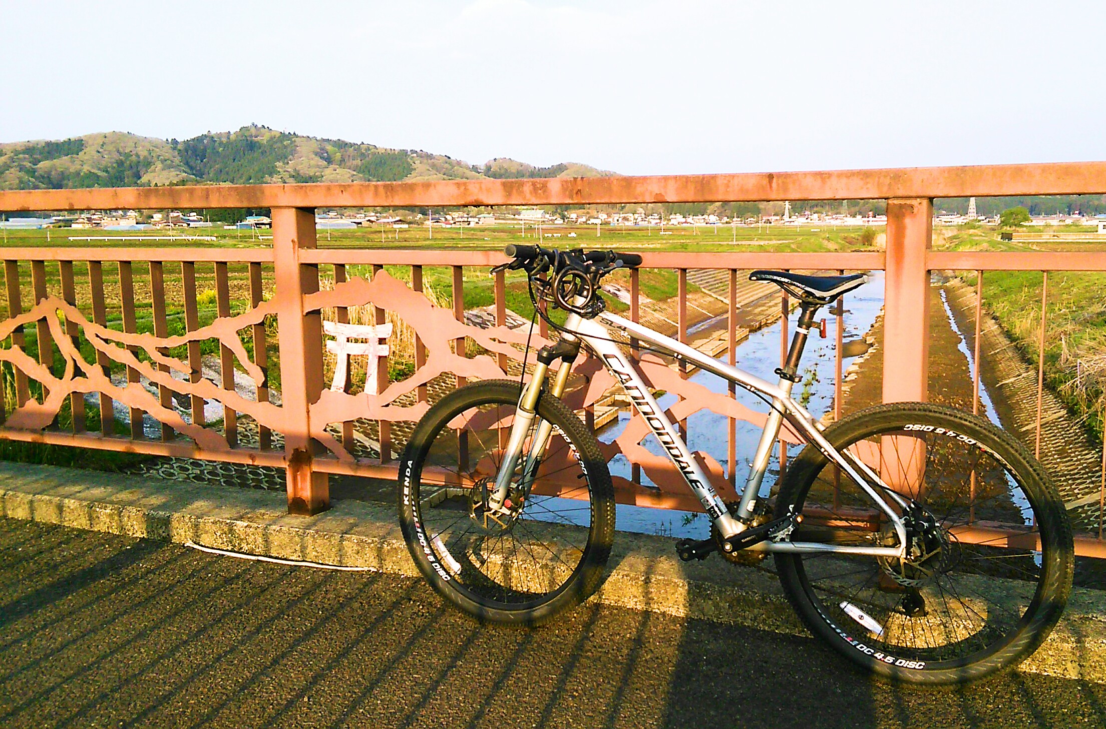 自転車は、震災の時に購入したマウンテンバイク。いつも通勤に使っているやつです。けっこう良いものを選んだつもりなので、なかなか軽量。ブロックタイヤだけど、田舎道をトコトコ走るには調度良い。
