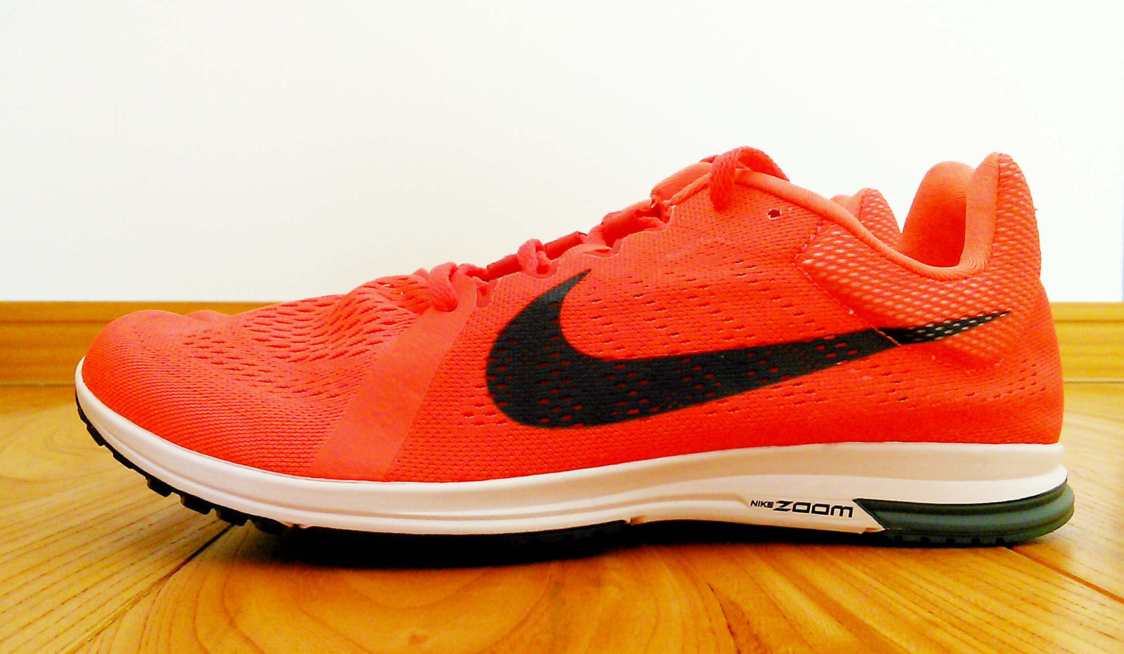 シューズを履いて走ったら、他のシューズも履いてみたいと思うようになりました。先日のレースでの感触を踏まえて、ソールの薄いシューズを購入。ナイキの「エアズームストリークLT」です。ネットでセール品を購入。たぶん、型落ちしたモデルだと思われます。