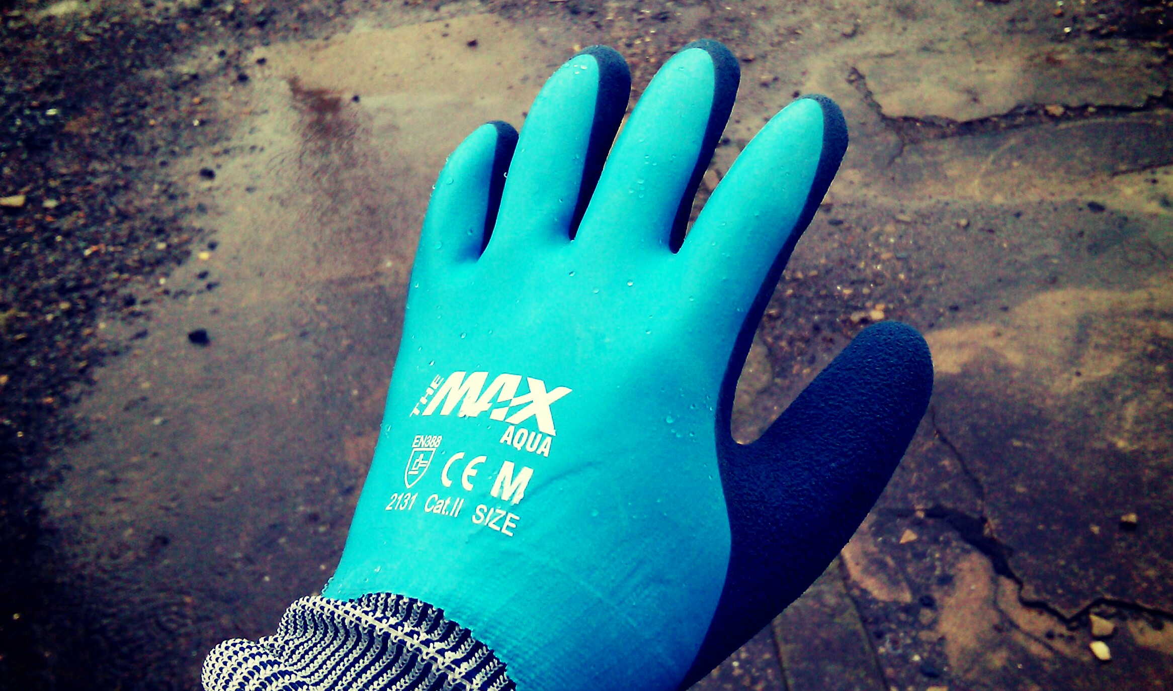 雨対策としてカッパやゴム靴は揃えたのですが、春になって困っていたのが、手の保護。冬は雪なので雪山用の手袋でしのいでいましたが、今の時期には暑すぎる。そんな中、行きつけのワークマンで見つけたのが、写真のゴム手袋です。滑り止めが付いている作業用のもので、手の甲部分も防水仕様。家事用のゴム手袋よりも厚く、着用した感じも、割とサラっとしてながらフィット感も良い。