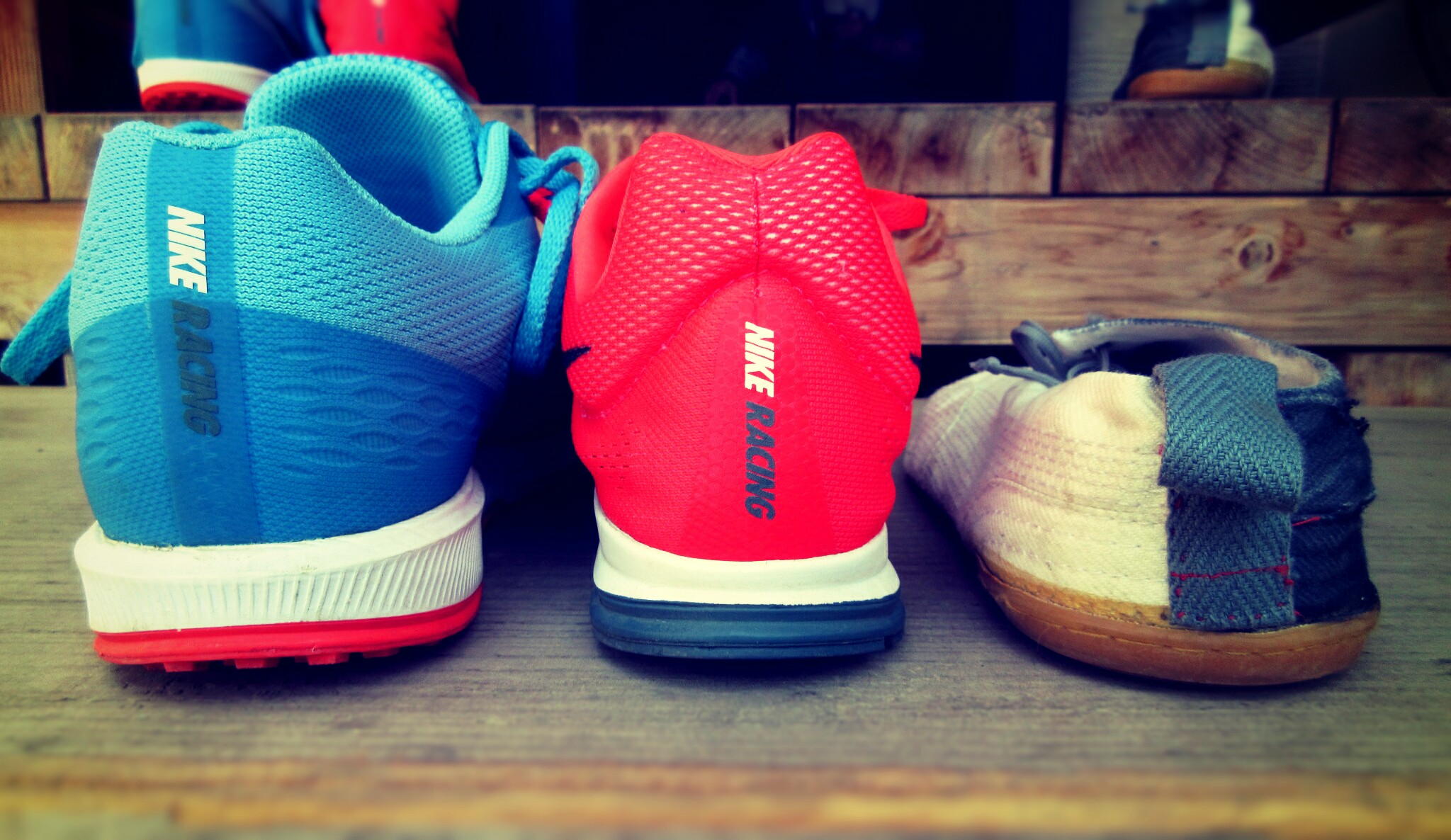 昨日は一番右の地下足袋でペース走をしたので、今日はタイプが違うシューズで走ってみました。