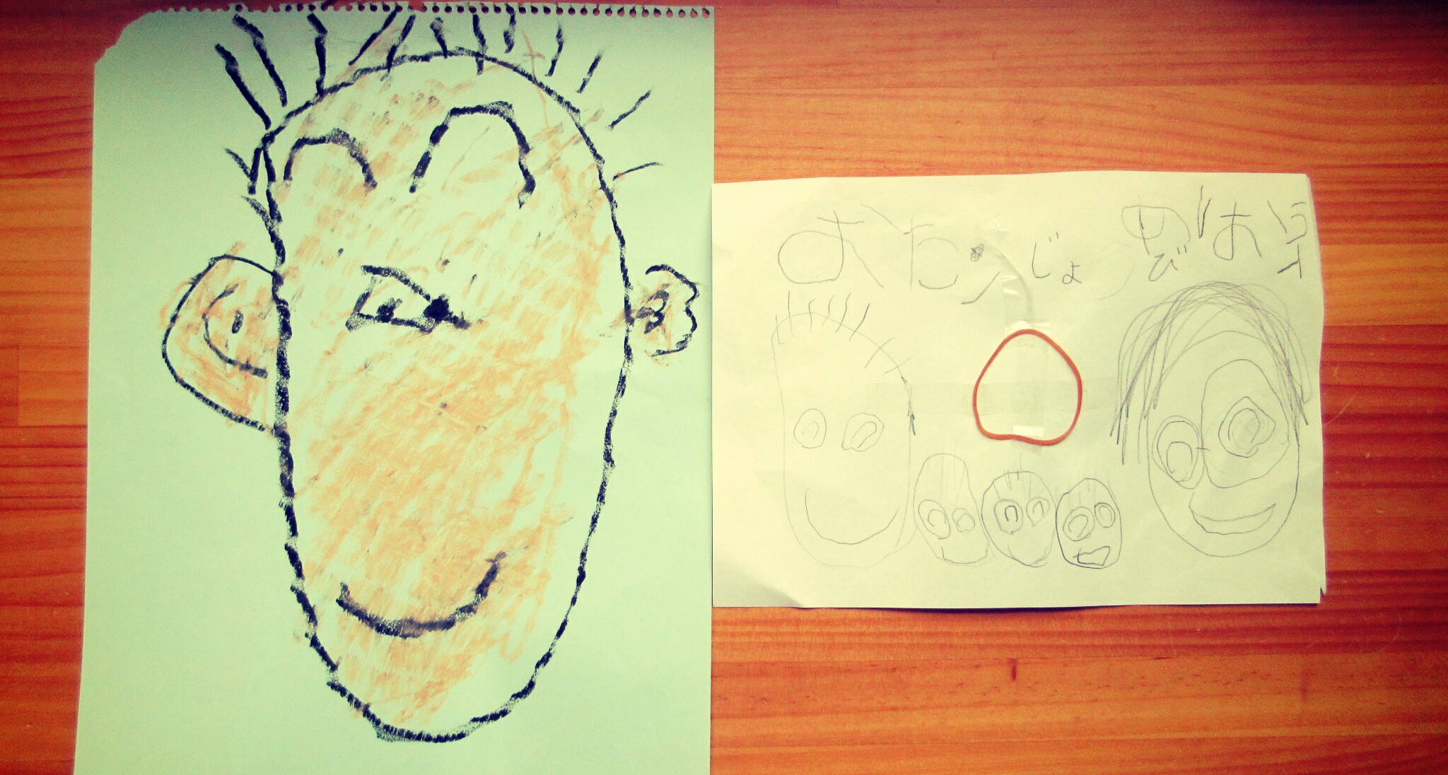 こどもたちが書いてくれる似顔絵の髪の本数があまりに簡略化されているのは気になりますが、だいたいイメージどおりに描けていますね。