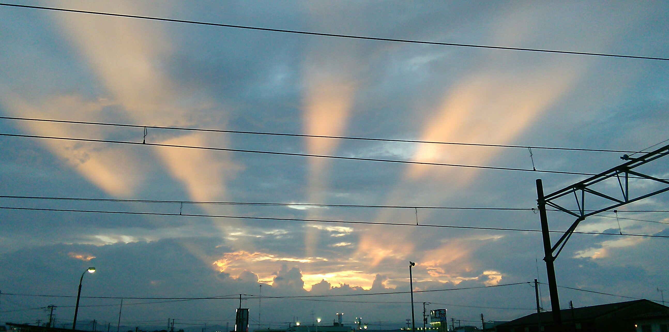 諦めて周りを眺めたら、雨も止み、雲の間から後光がさしていた。少しゆっくりしよう。