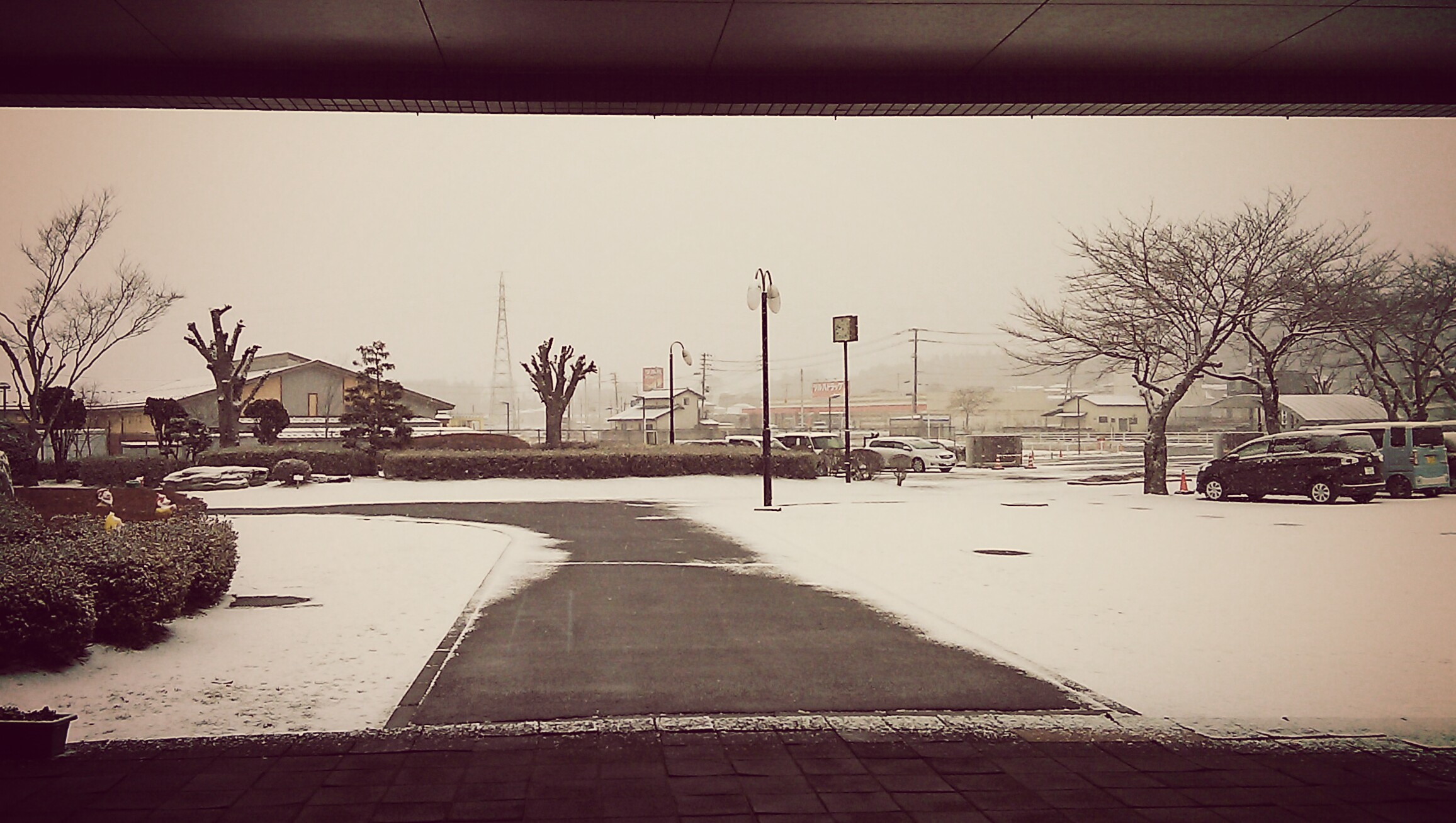 南岸低気圧近づき関東から降り始まった雪が、白河地方にも雪を降らせました。朝のランニングの時は全く降る気配もなかったのに、次男を幼稚園に送っていく頃には道路が少し白くなっていました。