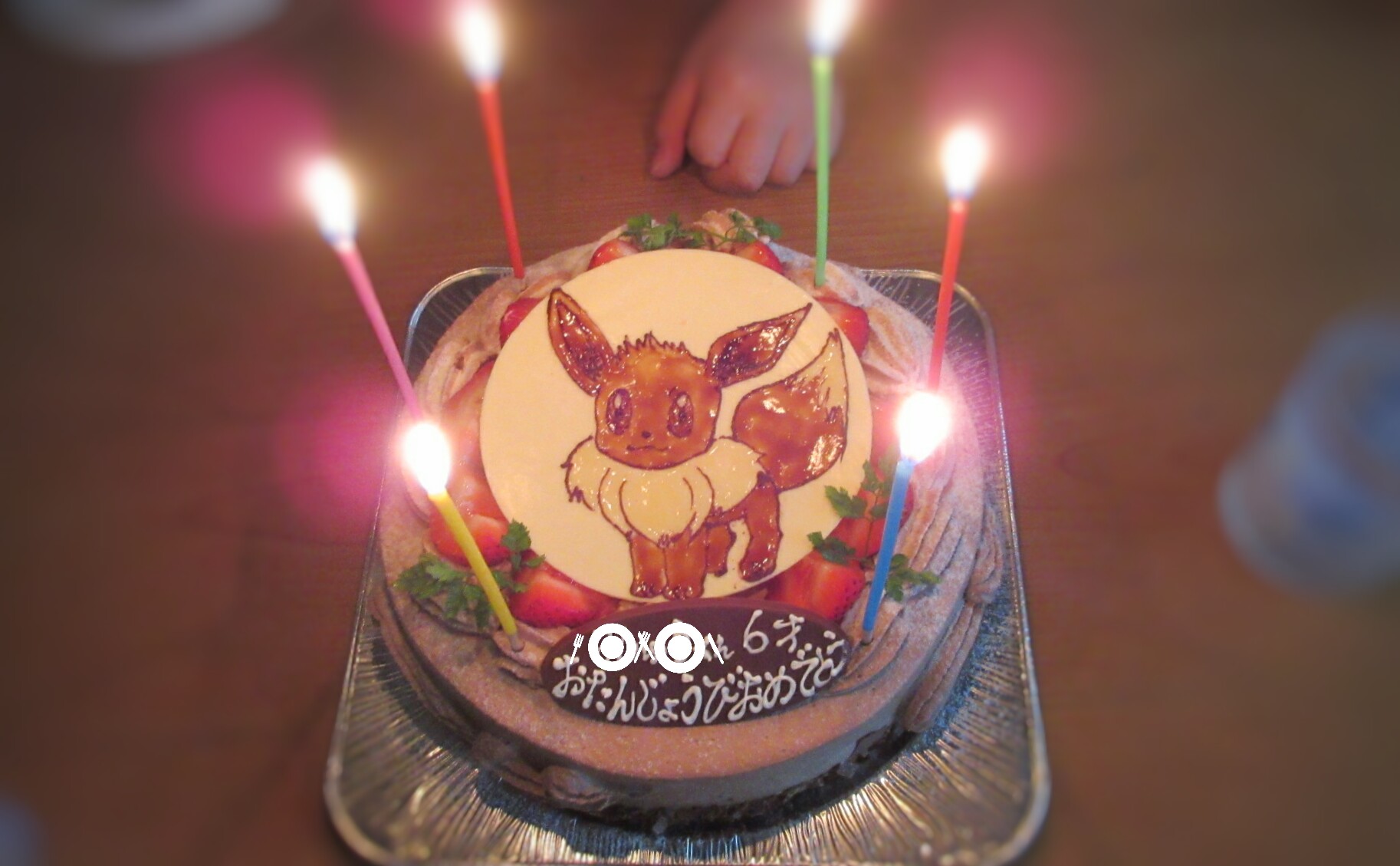 夏休みももうすぐ終わり。今日は来週誕生日を迎える次男の誕生パーティーを一足早く行いました。午後1番に注文していた次男が好きなポケモン「イーブイ」のケーキを取りに行きます。