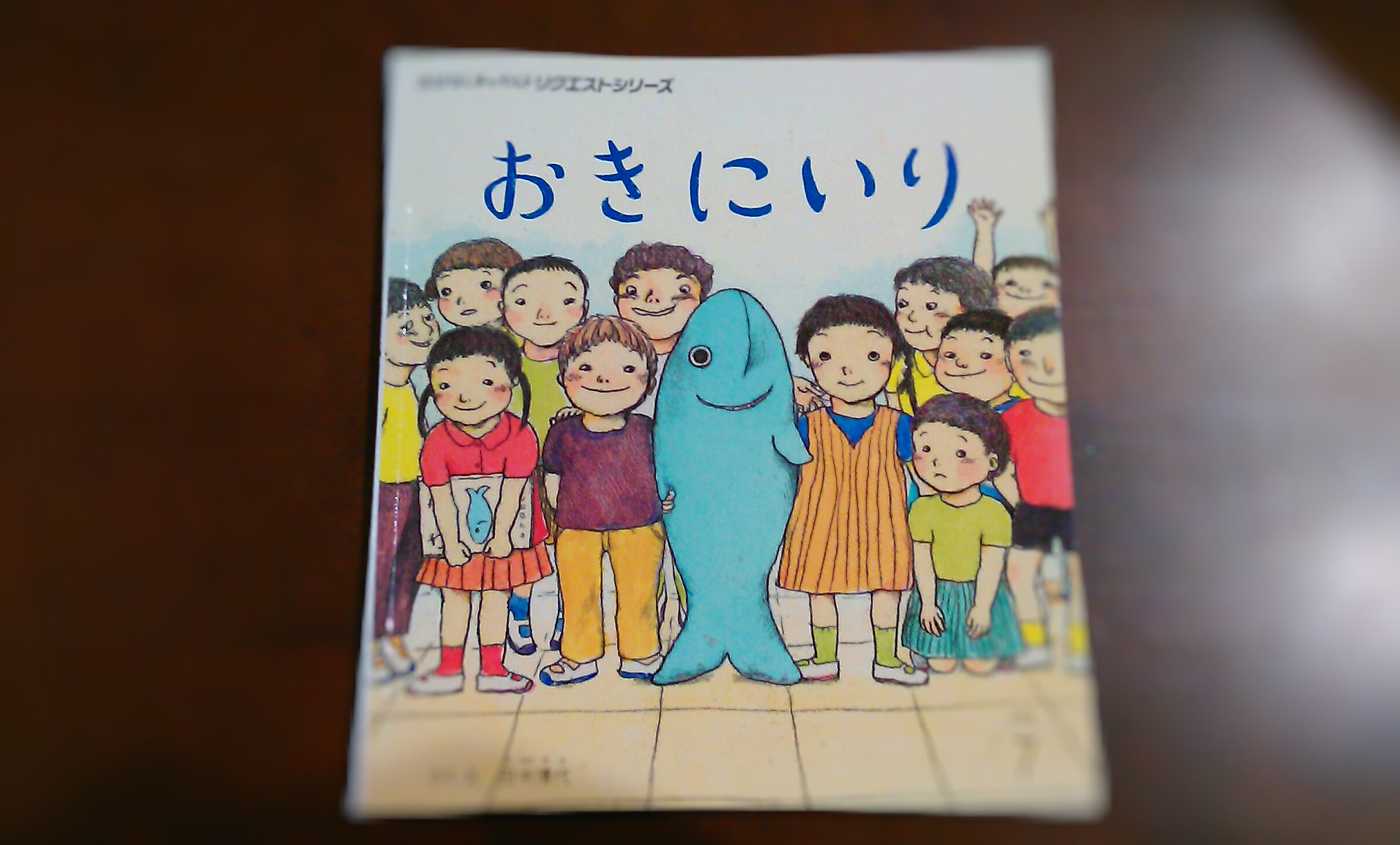 昨日の夜に布団を敷いていたとき、座布団の上に不思議な絵本を見つけました。冒頭写真の「おきにいり」という本です。表紙はこどもたちの間に大きめなお魚一匹。そのお魚には口みたいなのが付いてる。。。シュール。次男が幼稚園から毎月買っている簡易版の絵本でした。気になる内容はというと、謎の魚は着ぐるみで、お母さんに作ってもらったその着ぐるみを着た子が幼稚園に登園するというお話です。登園途中に雨なんか降ったりして、まあ、大変だわ。。。小さいこどもは袋とか箱に入るの好きですからね。。奇妙な魚の着ぐるみなんか大好物でしょうね。