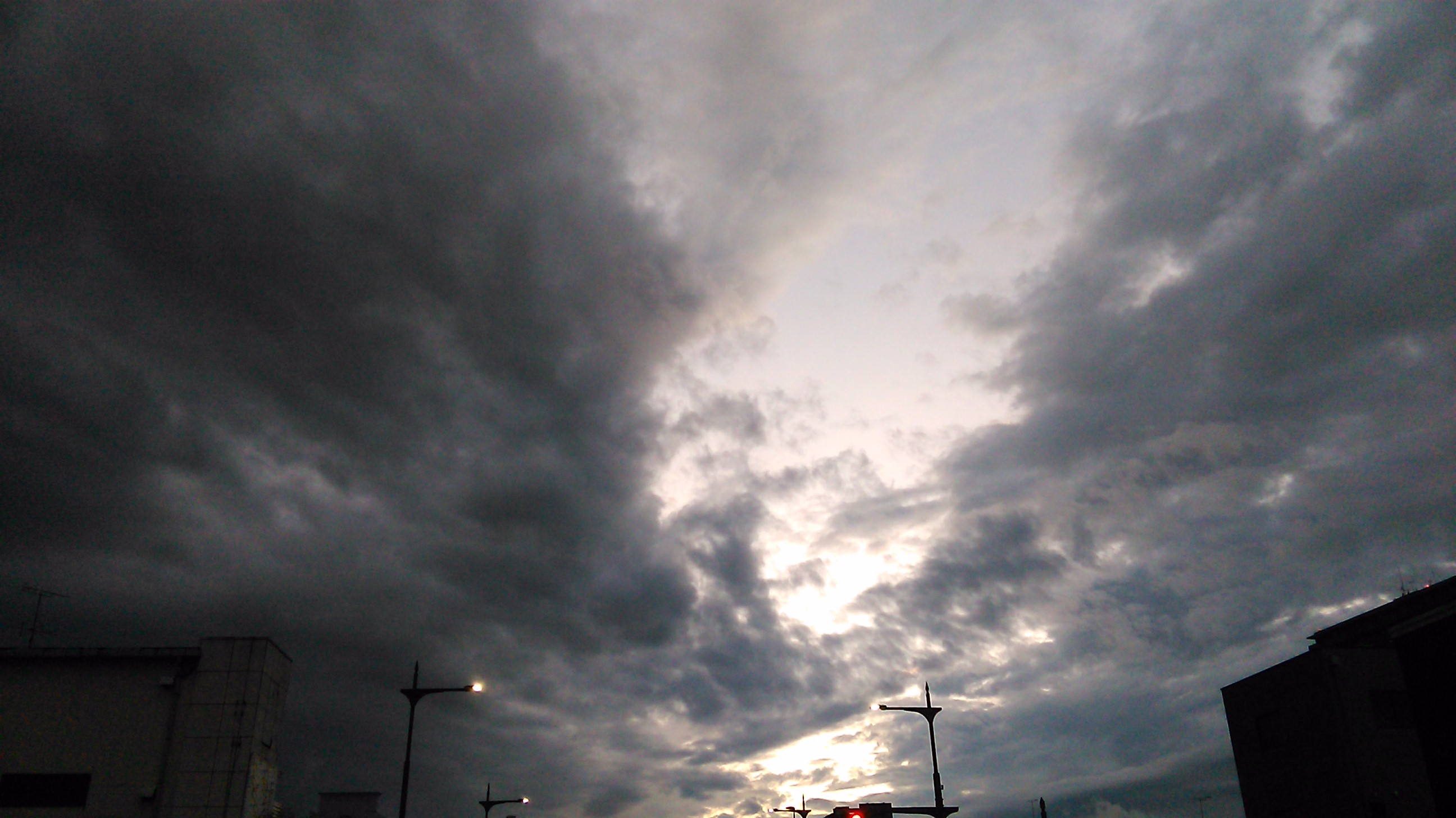 今日も早起きして海に行きました。昨日今日と雨が降ったり止んだりの天気。夕方の空の雲が、なんとも言えない色と形をしていました。
