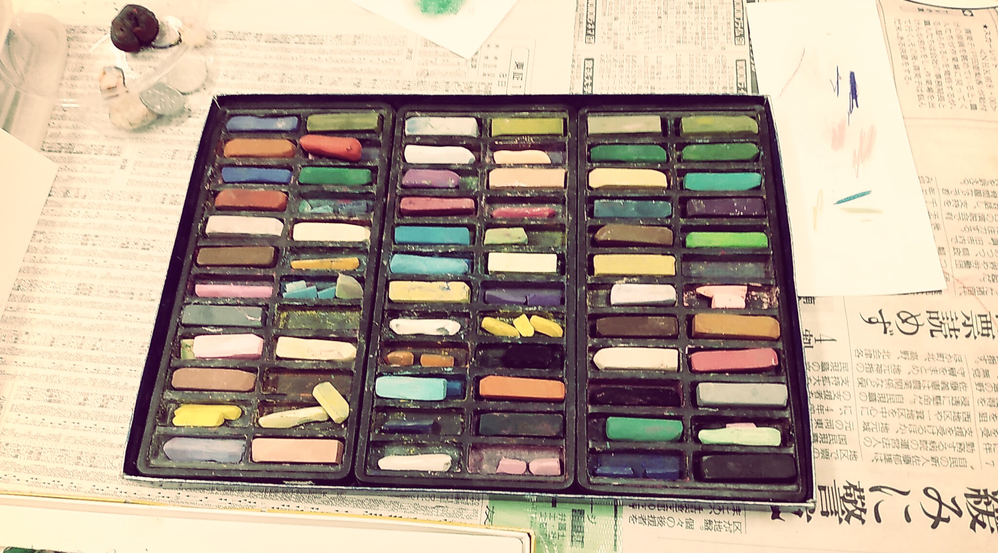 そして今日は地元の福祉施設で次男の絵が飾られるとのことで、見学に行ってきました。施設ではパステルのお絵かきコーナーもあり、三兄弟で参加。長男はドラえもん、次男はピカチュウ、三男は梅干し(?)を描く。
