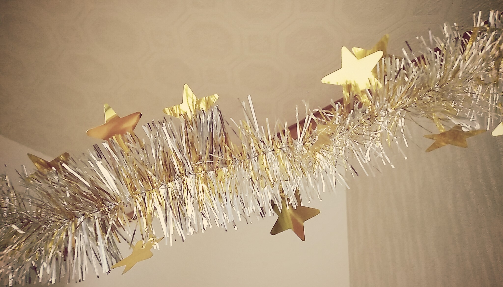 たぶん、次男は幼稚園でクリスマスの飾り付けをしているので、家でもやりたいと思ったのだと想像します。工作や絵を描くことが好きな次男は、カラフルなクリスマスの飾りもお気に入りのようです。私はそれほどイベント好きではないのですが、家の中が普段とは違った雰囲気になるのは悪くないなーと思います。家に入ったときに、ふと見上げるとキラキラした飾りが見えると大人でもちょっとウキウキしますね。これに音楽なんかが流れてくると、気分はますます上がりますが、さすがにそこまでは凝れないかなー。