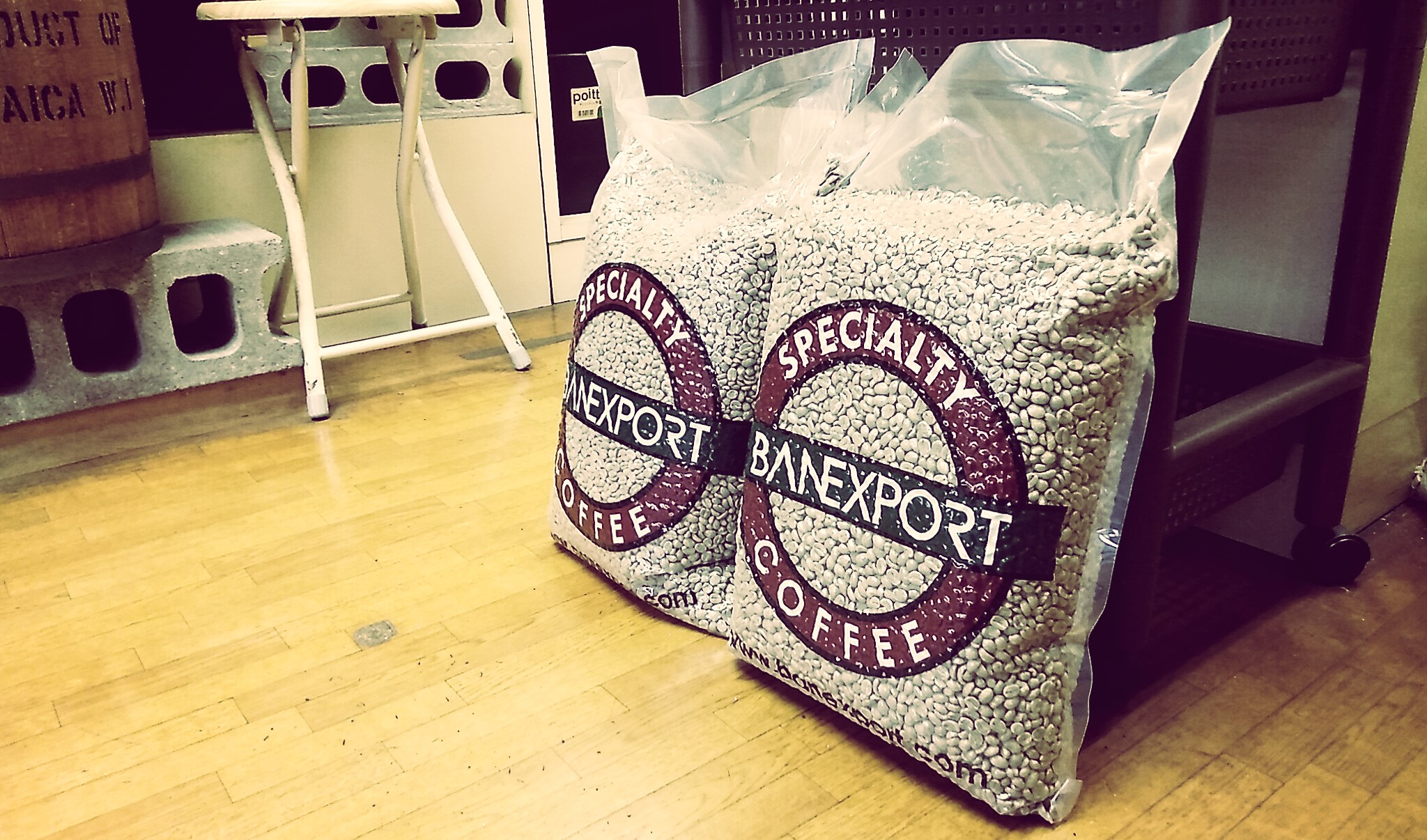 いつもの店で豆を焼いてもらいながらサービスコーヒーを1杯いただく。今回はオリジナルブレンドとモカブレンドの2種類を注文しました。豆の焼ける香りを楽しみながら飲むコーヒーは格別です。