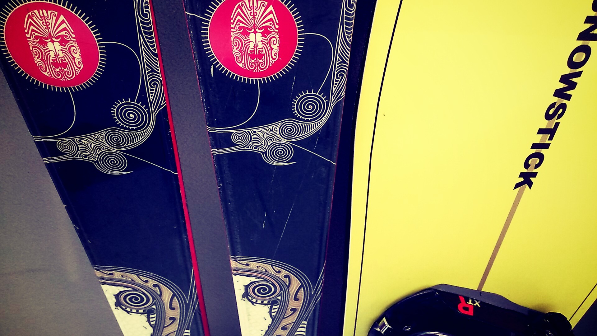 昔お世話になっていたスキーガイドの方からいただいた板。他にも2本、板があって、そちらメインに使っていたので、この板は久しく使っていない。私が持っている板の中では1番張りが強くて、堅い斜面をハイスピードで滑るのに適していると思います。テレマークスキーの場合、私の体重では抑えるのが大変だったので普段使いにならなかった。でも、アルペンなら体重をしっかりとかけられるので、良い感じになるのではないかと。