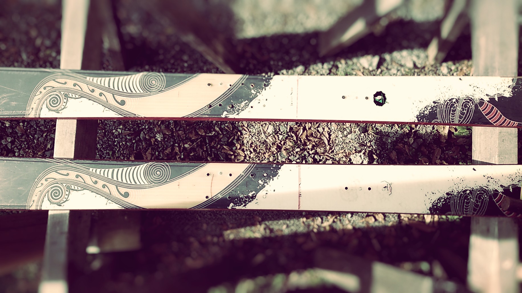中古のビンディングなので、取り付け位置を表示した説明書なんてない。スキー板のセンターとブーツセンターを合わせて、現物合わせでビスの穴の位置を決めます。穴あけは電動ドリルを使用。この後、途中経過の写真を取るのを忘れていた。半日かかって取り付け完了。