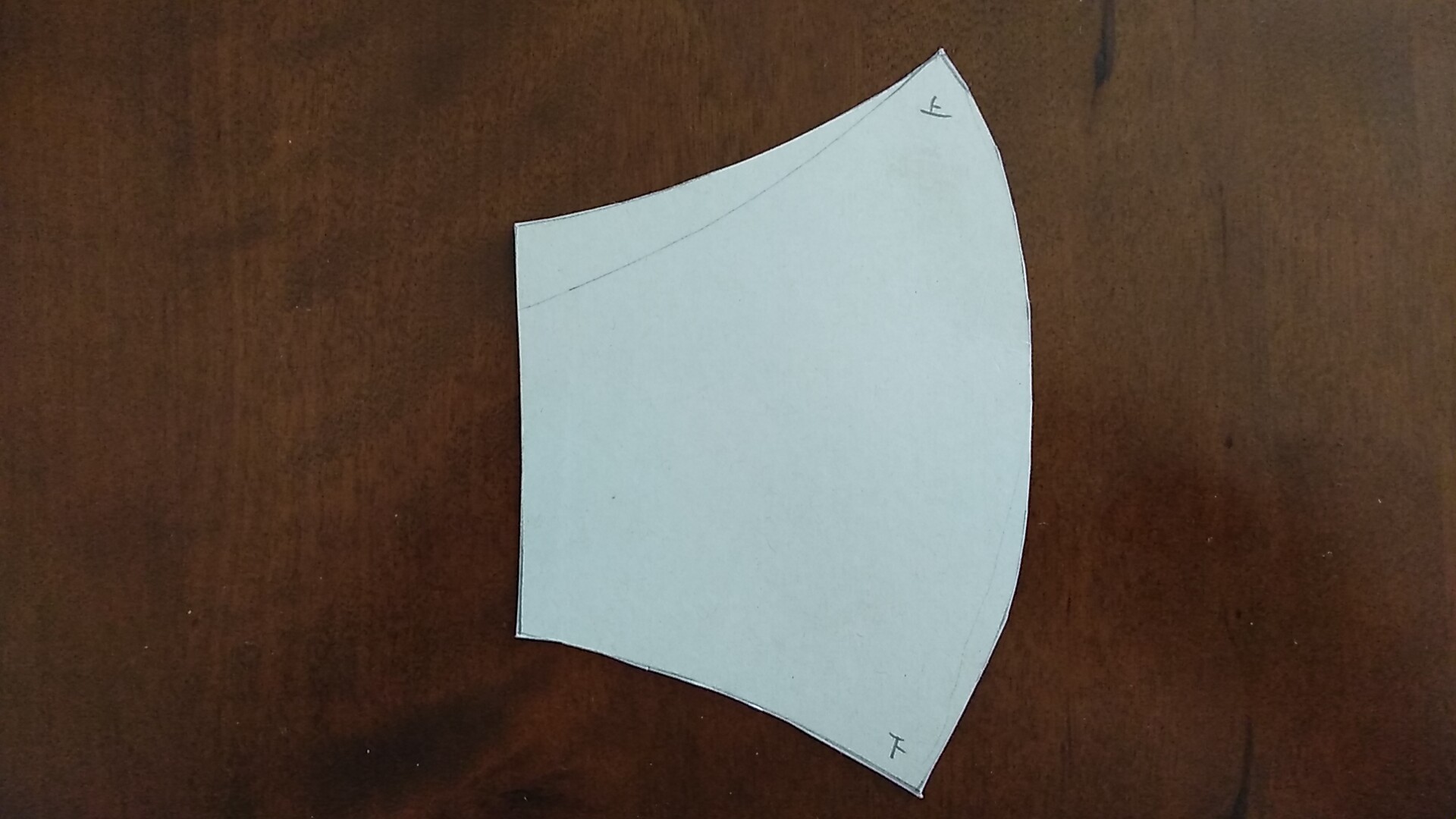 ネットでサーッと作り方を調べる。立体型とプリーツ型(ヒダ付)があるようだ。初めてなので簡単そうな立体型にしてみる。見よう見まねで型を書いて、型紙を切り取ります(冒頭写真)。型は1つだけ。これで左右と表裏の4枚の布を切り取る。縫い代は適当な幅で。左右の真ん中を縫い合わせ、その後に中表にして上下を縫ってサイドから裏返す。左右のゴム紐を通す部分を三つ折りで仕上げる。ゴムを通してサイズ調整すれば完成!