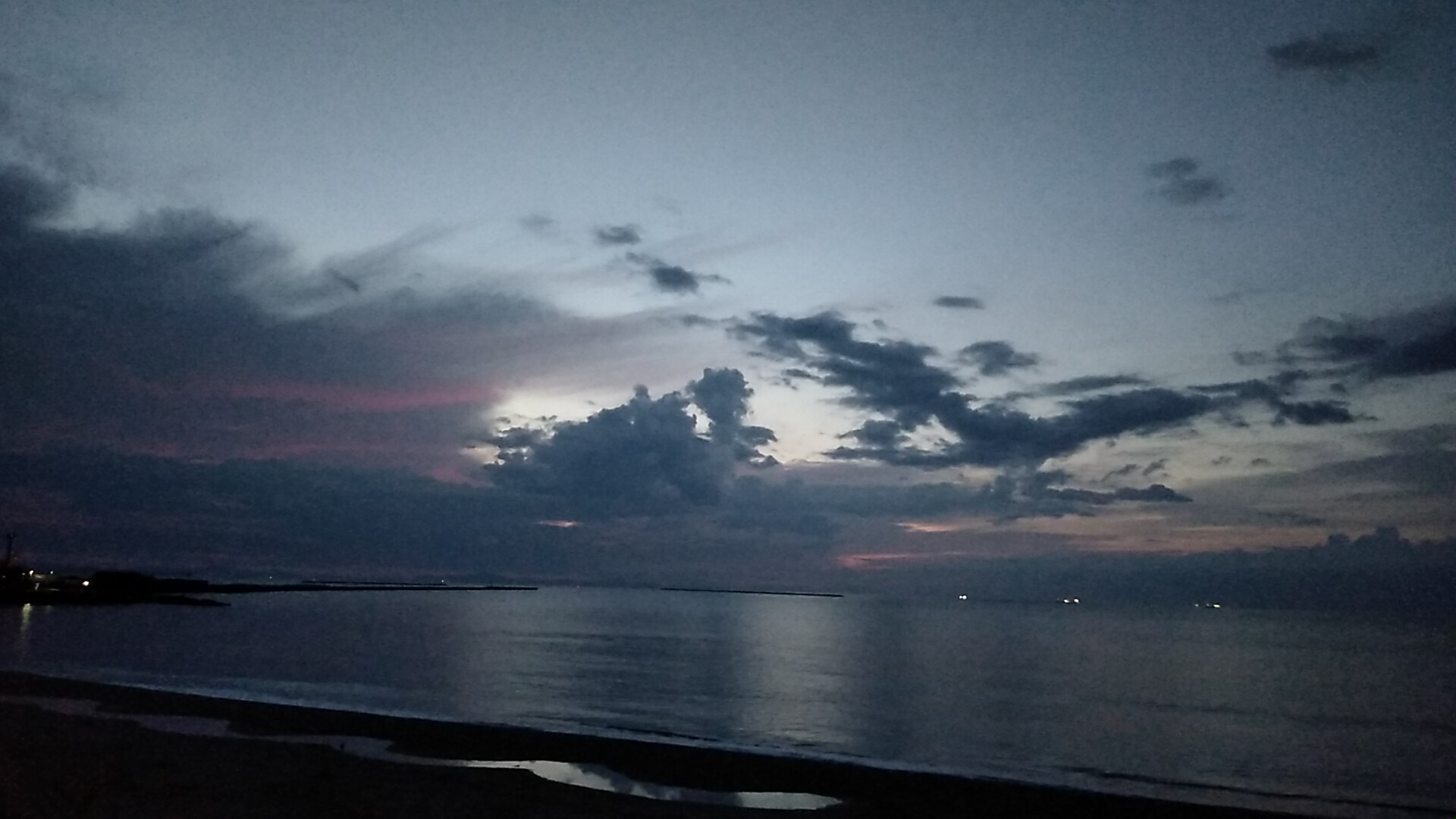 朝日を眺めながら海を見ると、見事なフラット状態。えっ、湖?と疑ったが、目を見開いて確認してみても、やっぱり海でした。。。