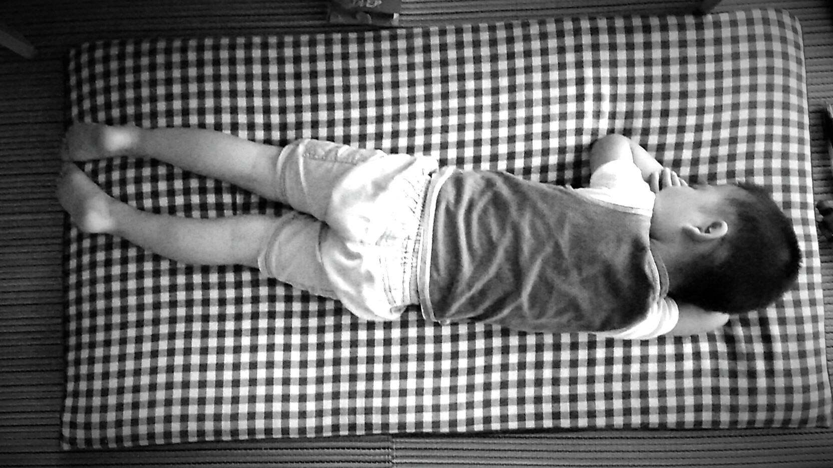 昼寝している三男のおへそが取られないよう、お腹にタオルをかけたいと思いまーす。