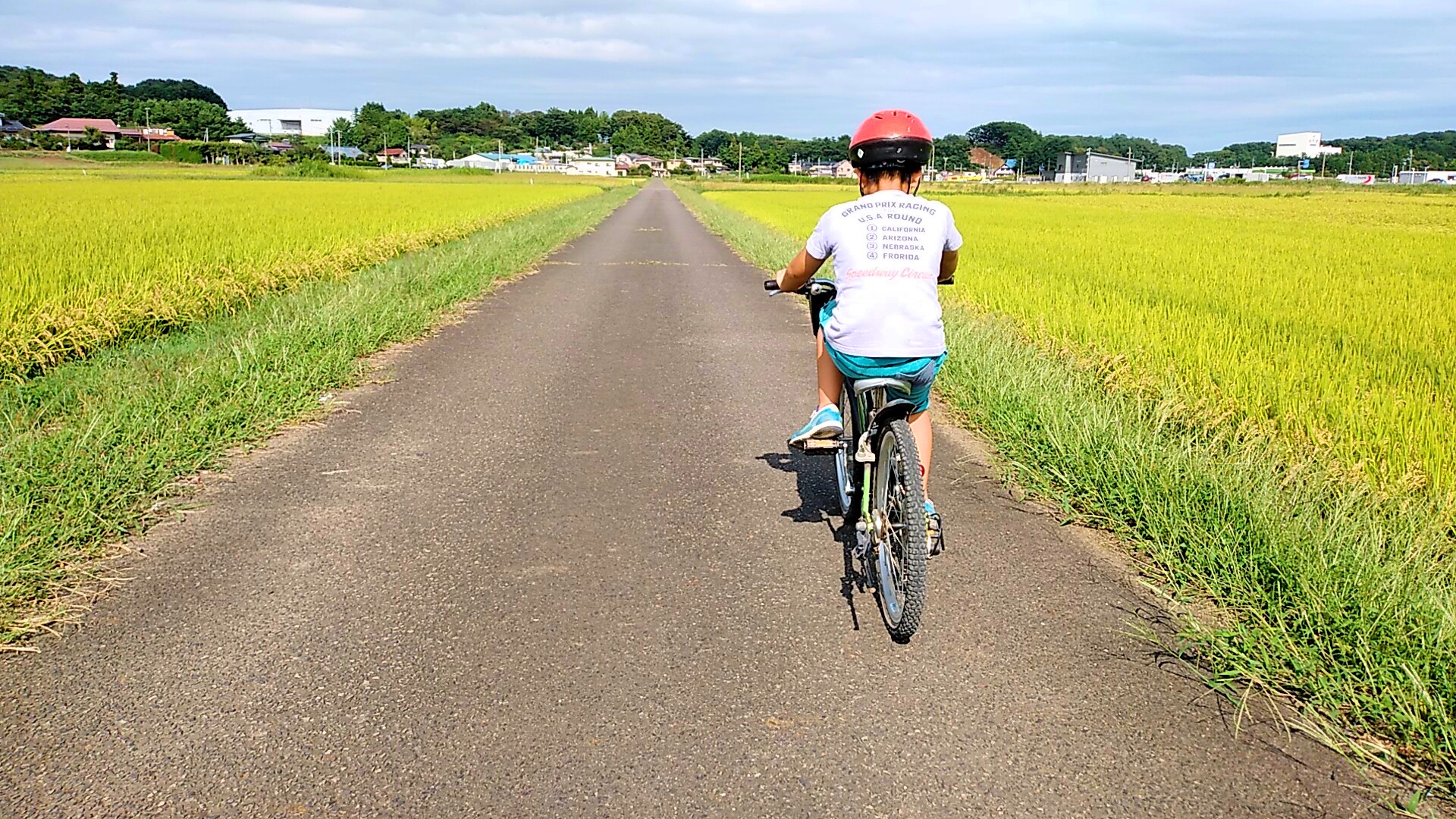 昨日はいつもの散歩コースを自転車で回りましたが、今日はちょっと遠出して、山を越える冒険コース。坂を上っては下る、スピードを楽しめる行程です。上りはハアハア言って大変そうな長男でしたが、最近、運動と食事の改善でだいぶ身体が締まってきたので、夏休み前のよりも体力が付いたようです。上り坂も文句言わずに上って、下り坂のスピードを楽しんでました。