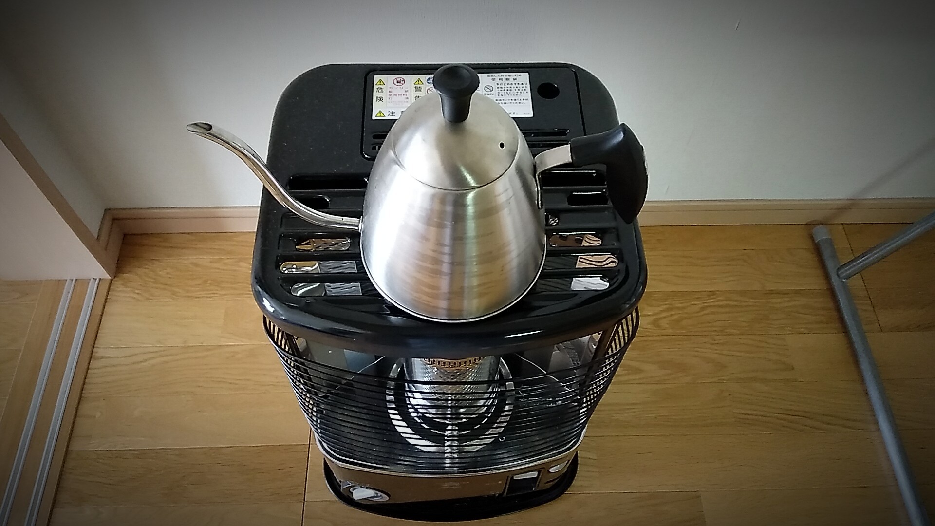 部屋ではIHコンロを使っているので、火の元はストーブだけ。火の管理は細心の注意を払わないとね。