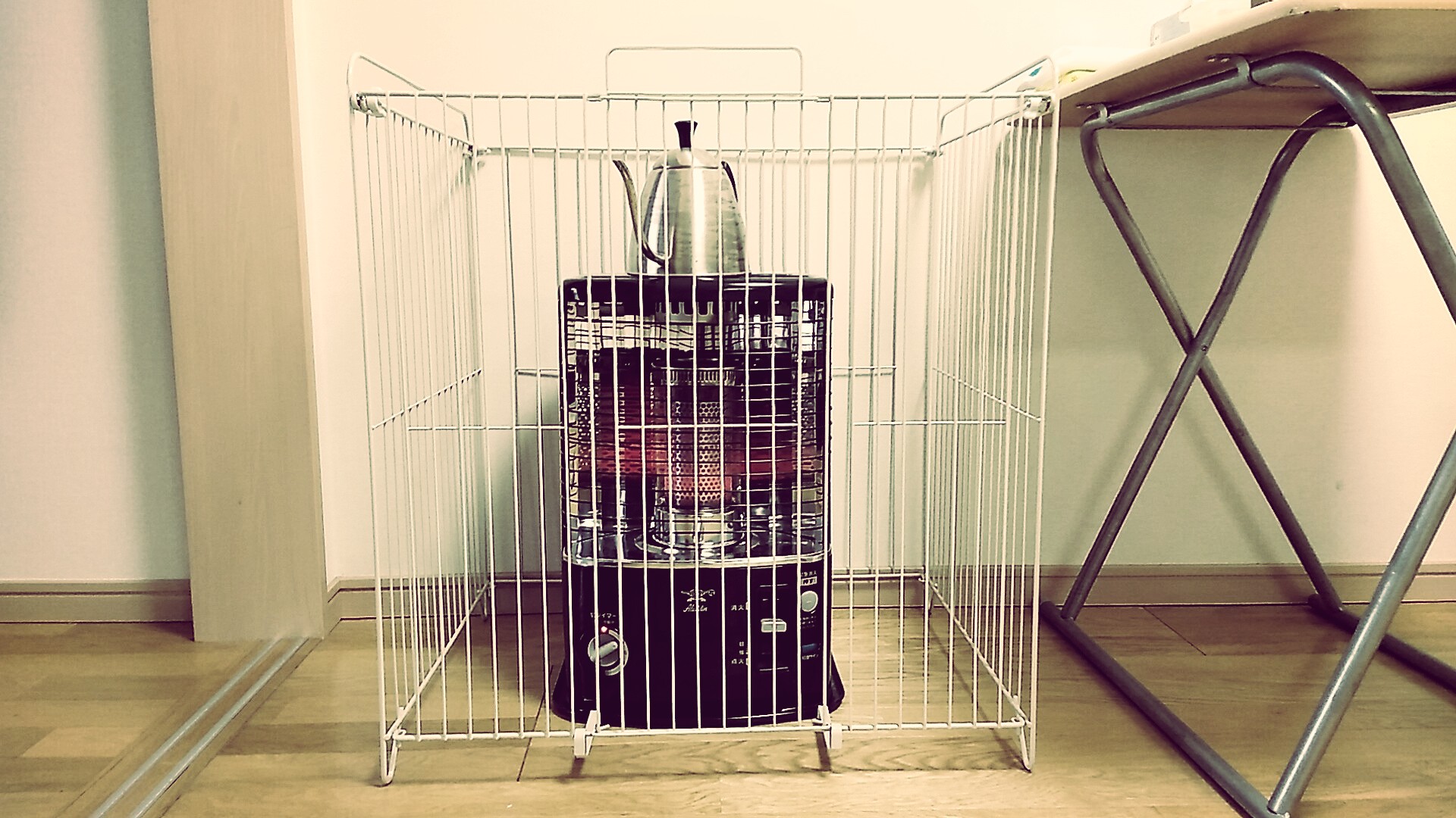 私1人であれば柵はいらない。まあ、あったらあったで安全なんでしょうけど。これは冬休みに家族が仙台に遊びに来ることになったので、子どもたちが誤ってストーブに突っ込まないようにするためのものです。その昔、実家が古い建物だったときに家にあったような、なかったような。。。今は反射型の石油ストーブなんて使っているご家庭は少ないでしょうから、この柵もあんまり売れていないんじゃあないかなー。組み立ててセットしたら画的にすんなり馴染んだので、この冬はこの状態で使い続けてみます。