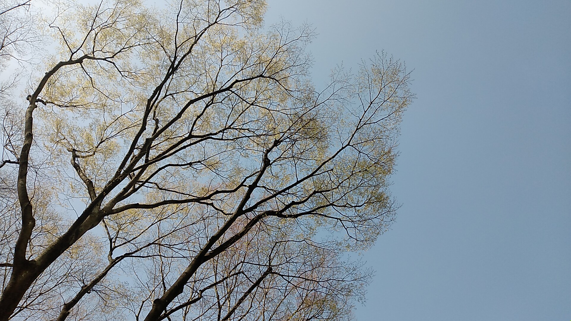通勤途中の定禅寺通りのケヤキに、緑の新芽が出てきました。冬の間は灰色の幹、枝だけで殺風景な印象だったけど、今は小さな緑が美しく見えます。桜の花の間にも緑が見えてきて、これはこれで趣深い。最近寒いせいか、桜の花が散るのが遅いのかも。