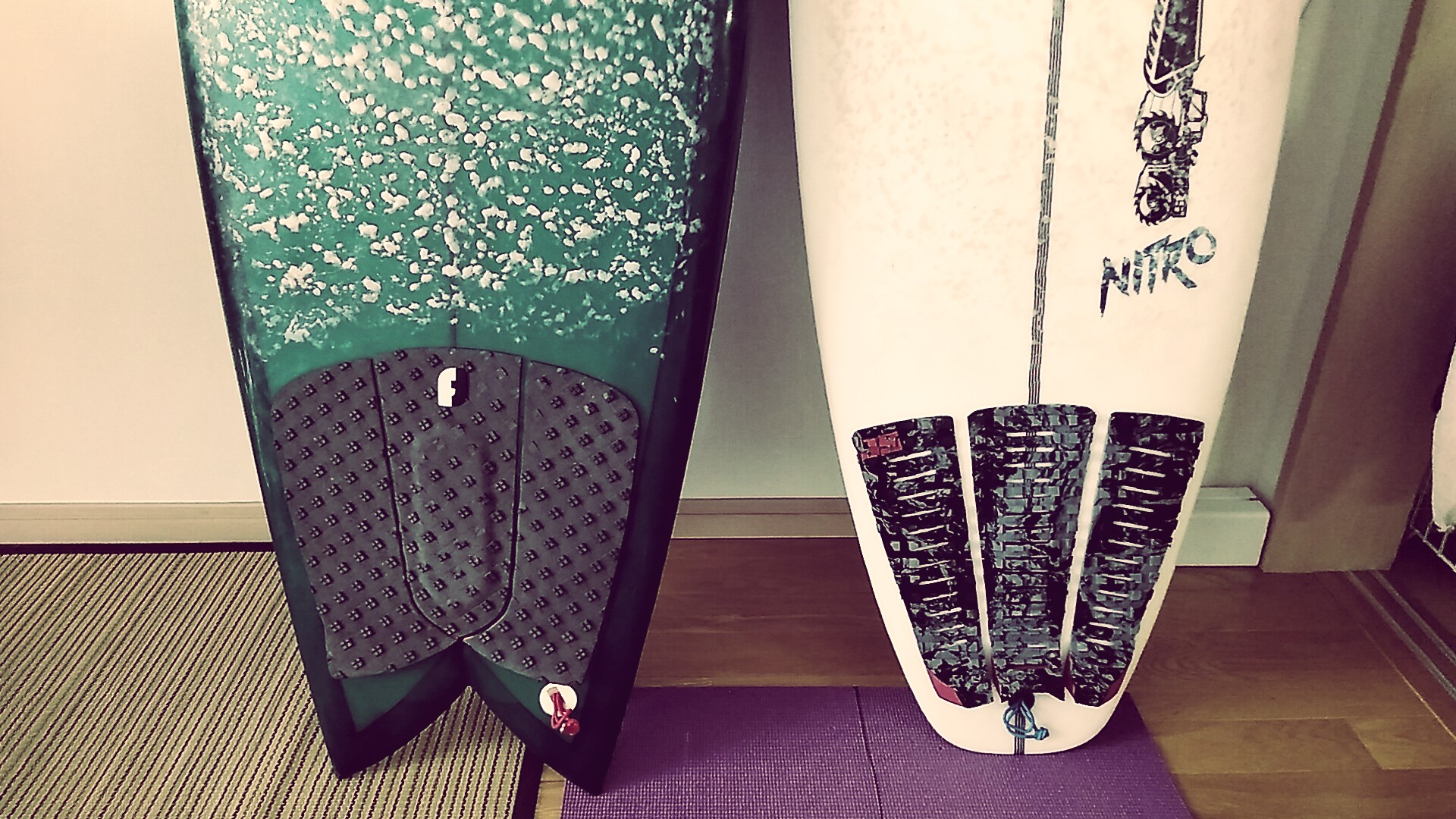 最近、長めのミッドレングスばっかり乗っていたので、短い板の感覚を忘れつつあります。でも、YouTubeを見ていたらショートで素敵なライディングをしている動画がたくさんあって、久しぶりに短い板に乗ってみようと宿舎の物置から板を2本引っ張り出してきました。