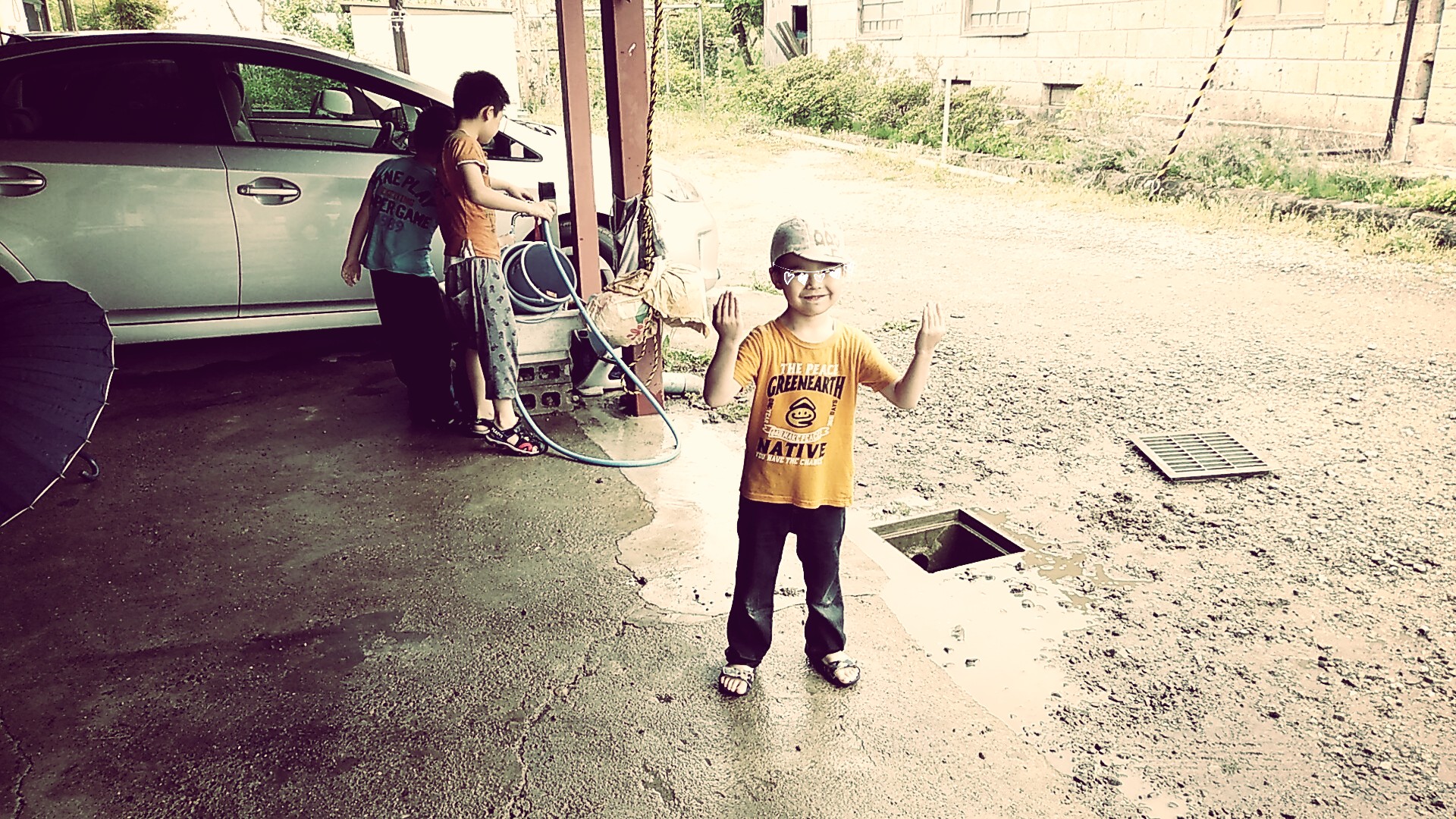 起きてみると外で子どもたちがキャーキャー言っているので見てみたら、外の水道で水遊びをしていた。長男が遊びはじめて次男と三男が乗っかったようだ。水をかけ合ったり、配水管からの流れを観察したり。まあ楽しいよね、水遊び。私も子どもの頃さんざんやりましたから。