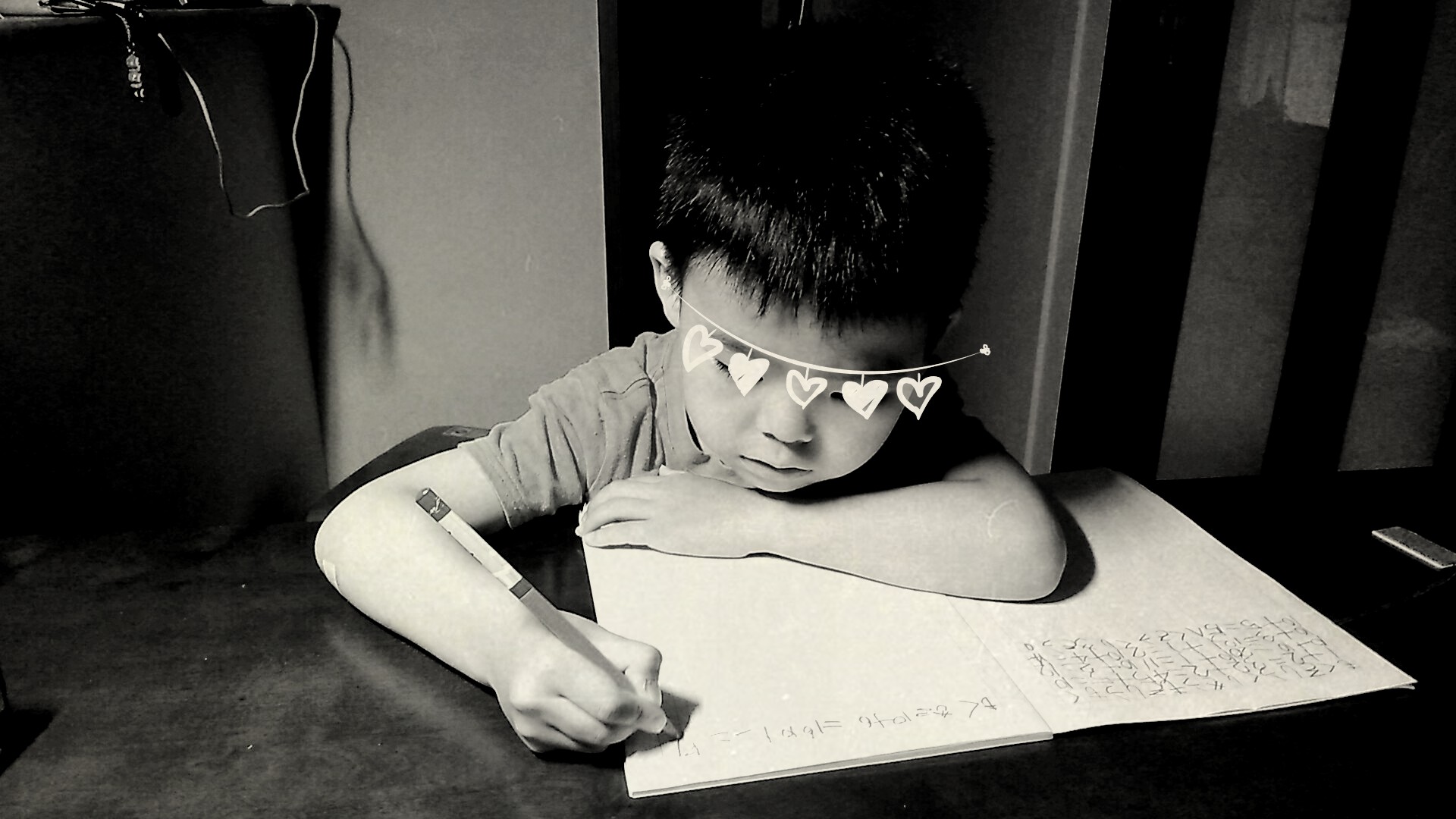 私がお絵描きしていると、三男も同じ机で文字を書く練習。方眼紙に几帳面に文字を書く三男。手先が器用なので字もなかなか上手です。
