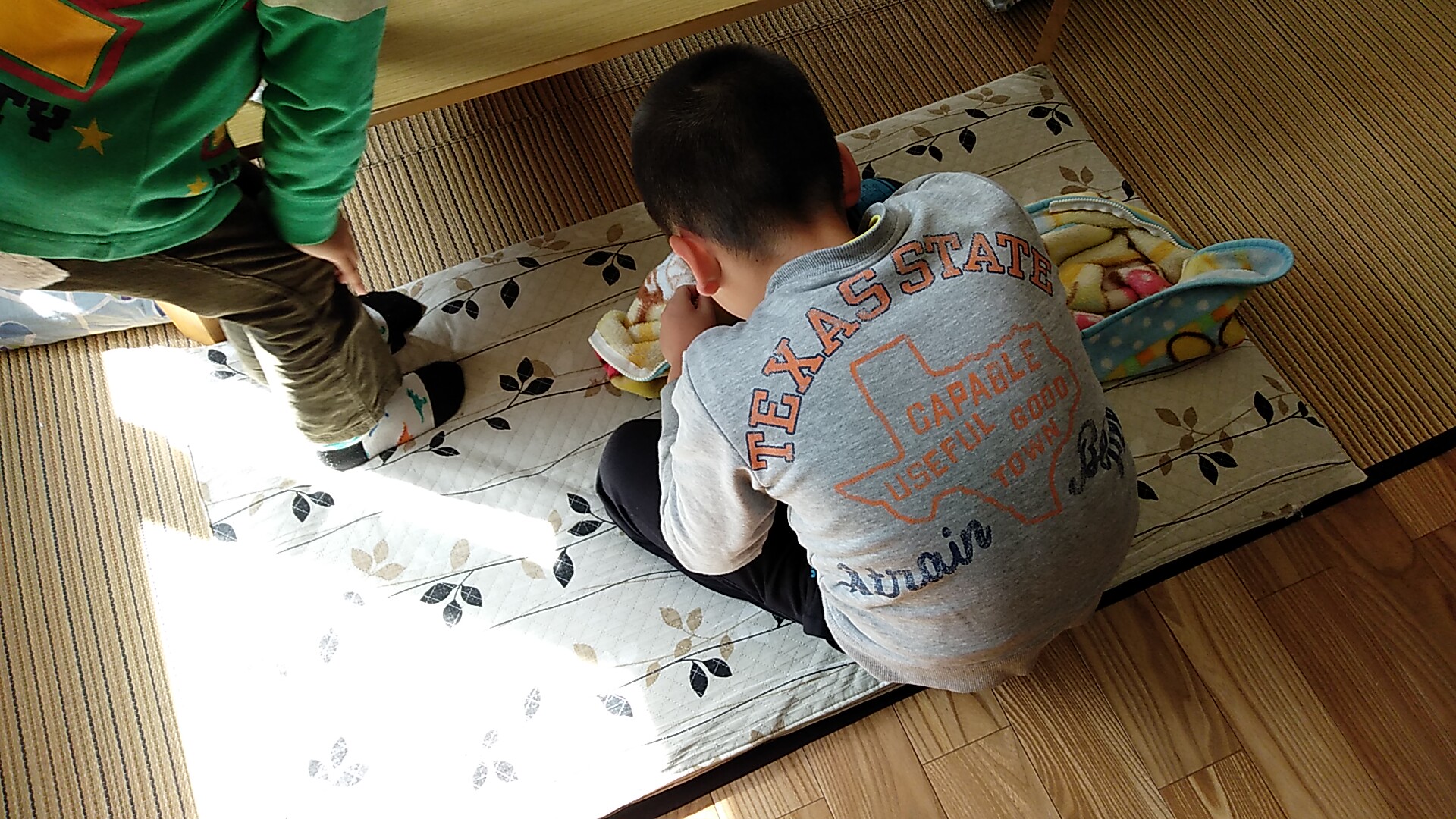 冒頭写真は昨日の夜に悪ふざけをして寝るときのベストを壊した次男が補修をしているところです。裁縫を教えてあげました。