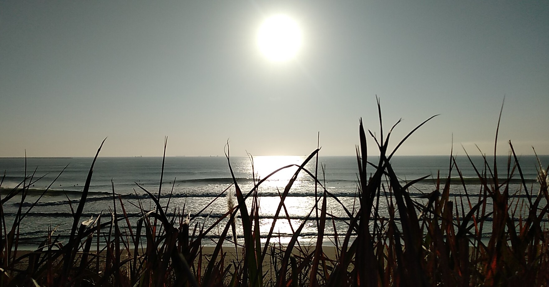 あらら、頭オーバーのセットが入ってきている?駐車場では多くのサーファーが「今日、ヤベえ!ヤベえ!」と口にしている。正面は激混みになりそうだったので、私は1人蒲生へ向かいます。