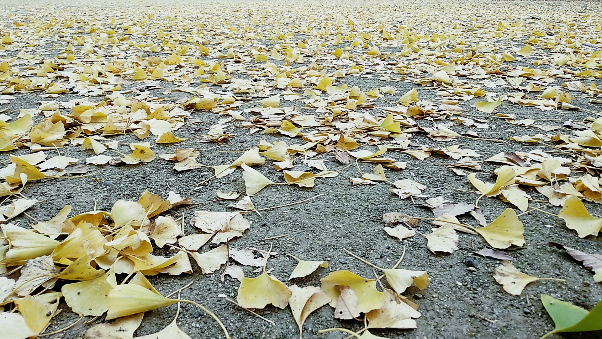 通勤途中の西公園も落葉が進んでますね。木にもよりますが、イチョウの葉もたくさん落ちていた。職場近辺はイチョウだらけなので、道路が半分黄色に染まっている。