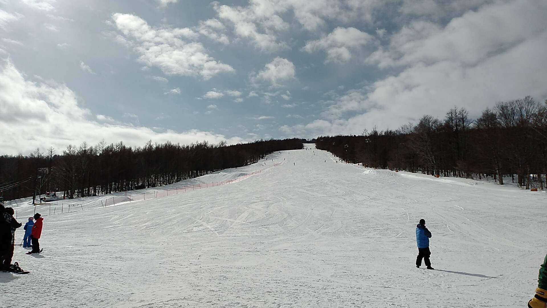ブーツとビンディングを調整したおかげでかなり乗れるようになってきました。板の太さを感じさせないカービング性能はさすがのベクターです。雪は少し緩みかけていたけど、柔らかい所が残っていたので楽しめました。回数券で合計4本、1時間。リフトが長いスキー場なので、かなり満足できました。