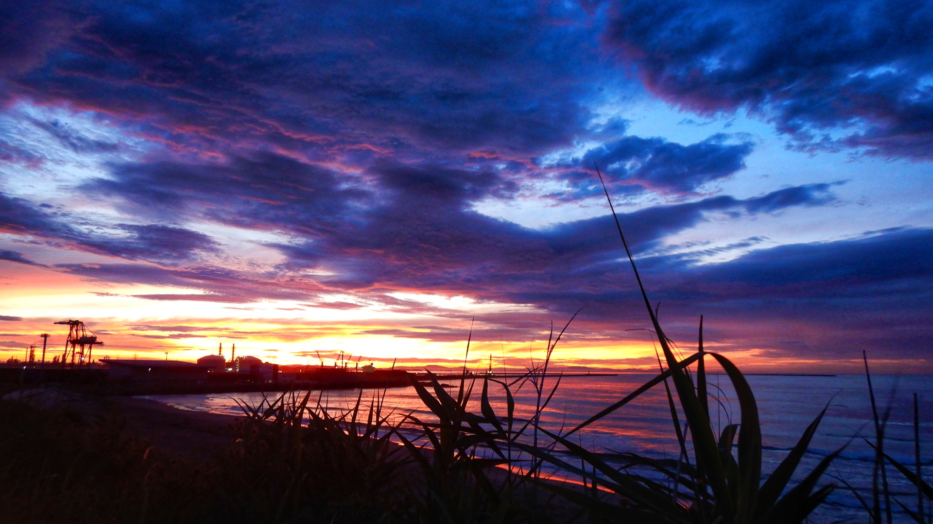 波乗りの途中、少し雨が降った。東北はまだ梅雨っぽい気候ですね。雨と朝焼けの光景も良かったけど、やっぱりカラッと晴れた空の下で波乗りしたいですわね。