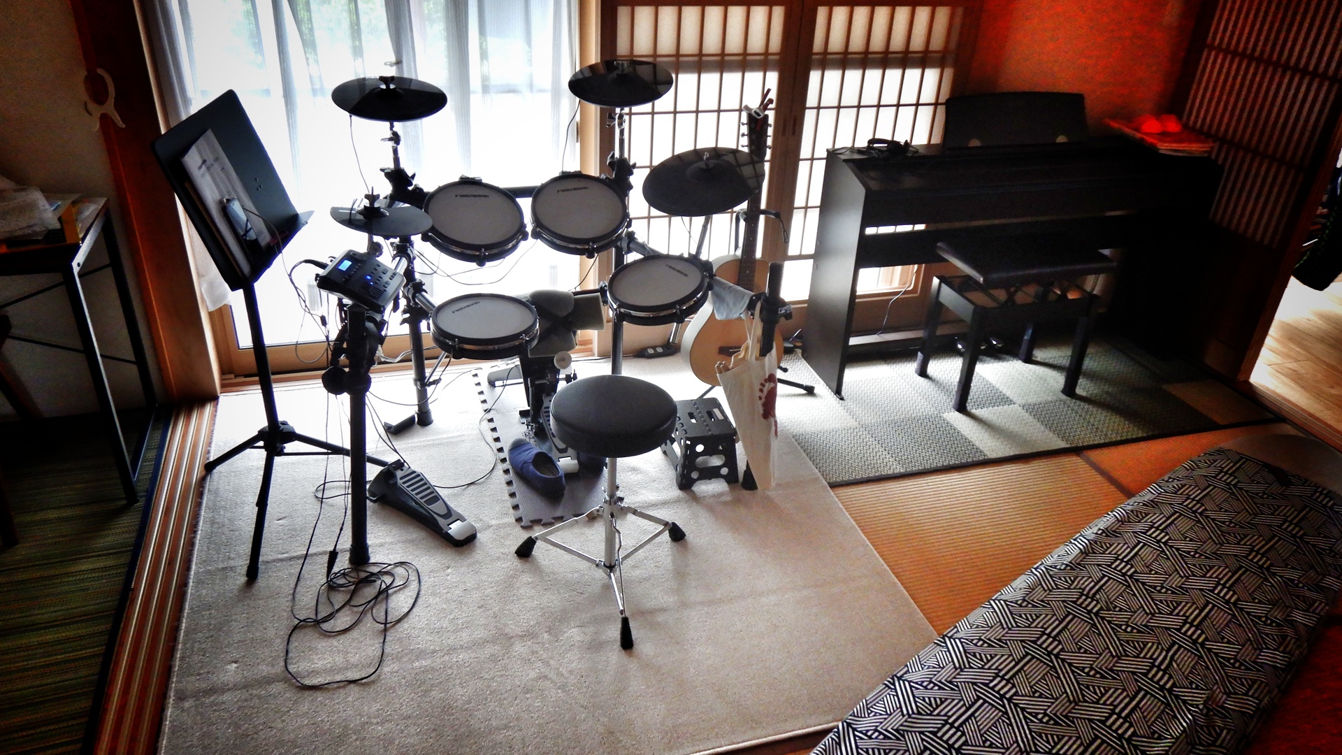 練習場所は来客用に設けた和室なんだけど、次男の電子ピアノ、私のギターも置かれていてすっかりわが家の音楽室ですわ。今日はロングボードも置いてあったりして、趣味部屋ですね。家建てたときはそんな想定、一切無かったんだけどな。結果オーライです。