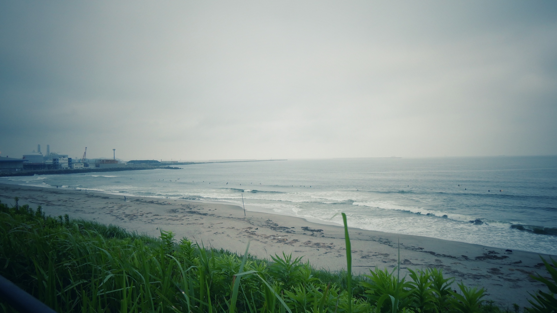 週末だし、朝一は潮も多いしで、少しゆっくりめの出発。すでに海の駐車場にはけっこうな車が駐まっています。あまり波は期待できない予報だったけどどうでしょう?波チェックです。