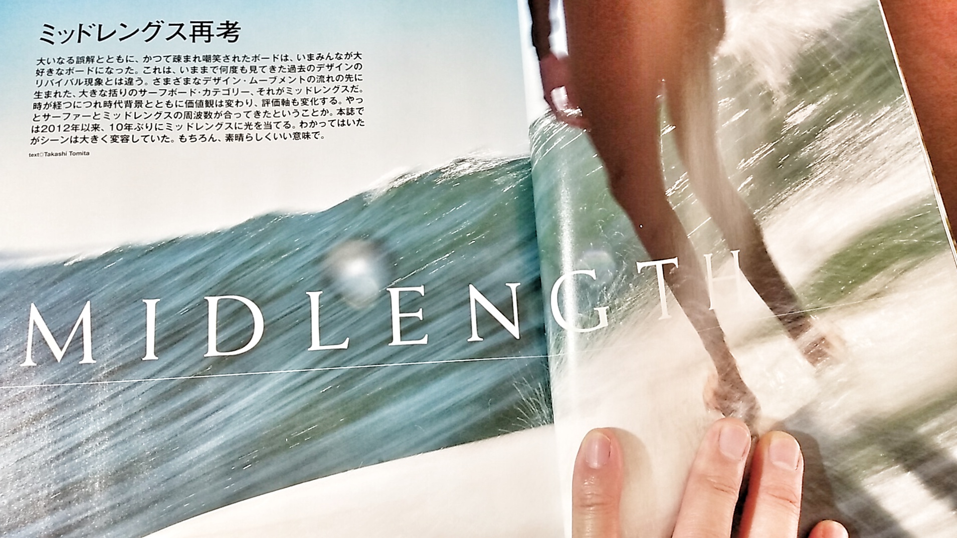 私は定期購入しているサーフ雑誌『Blue』が届いていたので、今はそれを読んでいます。今回は私の好きなミッドレングス特集。ミッドレングスは、私が初心者の時もテイクオフを覚えさせてくれたし、今も新たな波乗りの楽しさを教えてくれる恩人みたいな存在。明日の波乗りも、どんなコンディションでも楽しませてくれることでしょう。期待してマッス。