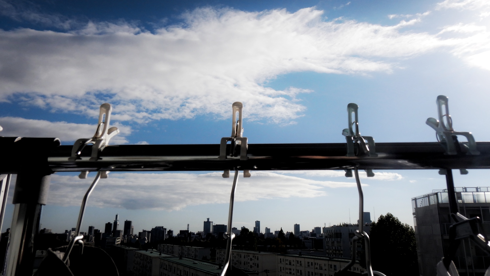 今朝も秋晴れ。起き抜けに洗濯をして、出勤までの短い時間ですが、天日に当ててみました。
