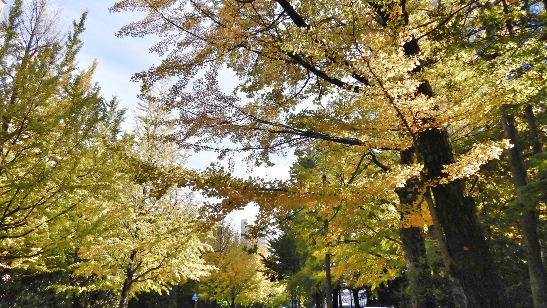 海に行く時は、早朝なので防寒必須ですが、通勤時間帯はだいぶ陽も昇って暖かい。寒がりなので長袖のインナーは着ていますが、それほど厚着する必要も無い。いつも通る西公園、定禅寺通りの木々もだいぶ色付いて、落葉も進んでいますね。職場の前のイチョウの木が1番キレイかも(冒頭写真です)。