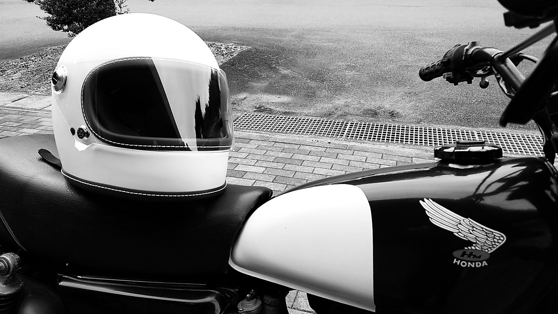 今日も新しいヘルメットで村内をクルーズ。肌寒いのでフルフェイスヘルメットの効果がバッチリですね。チークパッドって、頬の部分の内装材が頬をギュッと押さえつけるのがまだちょっと違和感。まあ、そのうち慣れるさ。バイクとの相性も確認。