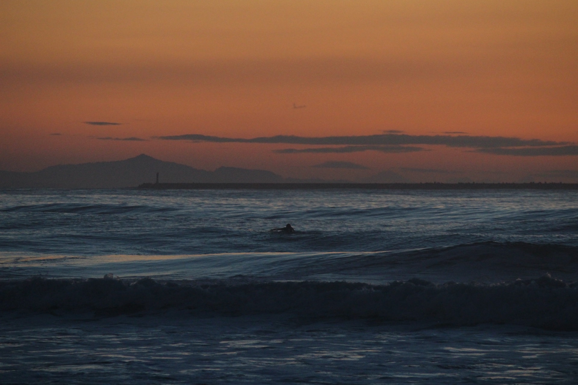 海に着いて波チェック。暗いけど波がデカいのだけは分かった。Mさんは今日は写真撮影に専念するとのこと。