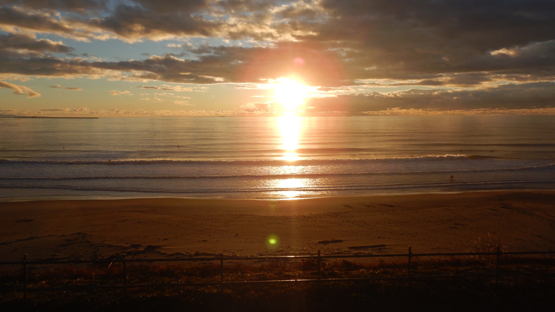 おお、予報どおり、昨日よりも波が上がっている。ちぇちぇっとブーツ、グローブを身に着けて、昨日と同じミッドレングスでGO。少し南側にパドルアウト。セットは腰くらいかなー。潮が多いので割れにくいのは昨日と変わらないが、サイズが大きくてテイクオフ容易。ミッドレングスのフローを活かしてスープを抜ければ、カットバックで戻りながらロングライド。良いグーフィーを4、5本いただきました。昨日もそうだったけど、鳥がたくさん海に浮かんでた。なんか、ピーピー高い音を発している。魚がいるのかな?黒く光る大きめの物体は、たぶんスナメリだろう。蒲生干潟が近いだけあって、自然の宝庫です。