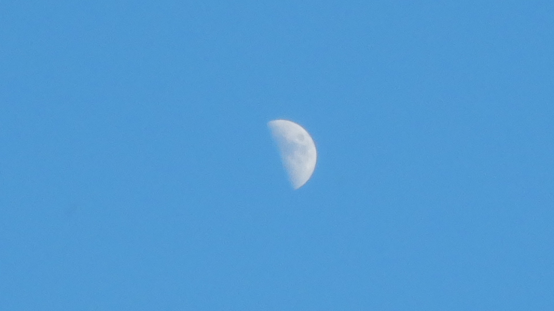 空には半月。三男がカメラの望遠を使って撮影してくれました。以外とちゃんと撮れてるね。