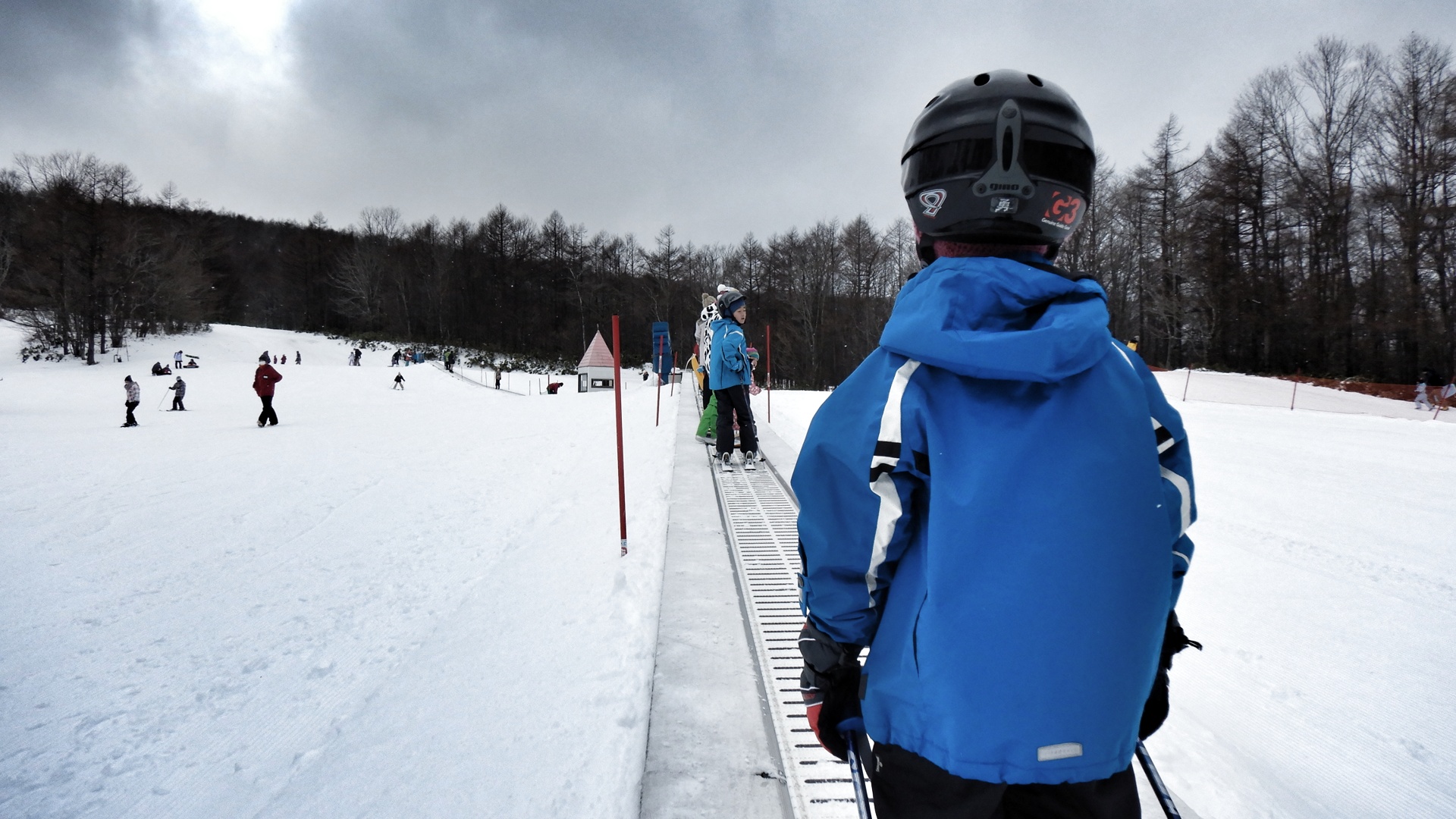 まずはトイレを済ませて、チケットを買い、いつものエレベーターまで移動。ソリの長男は早速ソリを持って上がっていった。私は次男と三男のスキーブーツを履かせて、まずは3人で下の段を滑ります。次男は普通に滑れそうなので、私は三男と2人で滑る。昨年よりも脚力がついた三男は、ハの字でブレーキも問題無さそう。何本か滑ったら1人で滑らせてみた。
