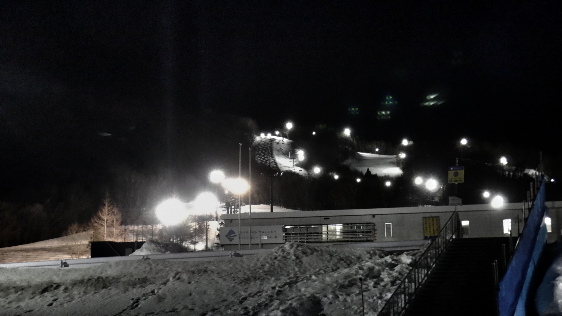 昨日の夜は仕事をバチッと切り上げて、ナイタースキーへ。昼の気温は高かったけど、夜はそれなりに冷えるね。マイナスにはならないけど、風は冷たい。おかげでスキー場のコースはガチガチに凍ってました。削られた氷がサラッと溜まっている場所は良いけど、むき出しになったバーンはカッチコチの氷でしたね。