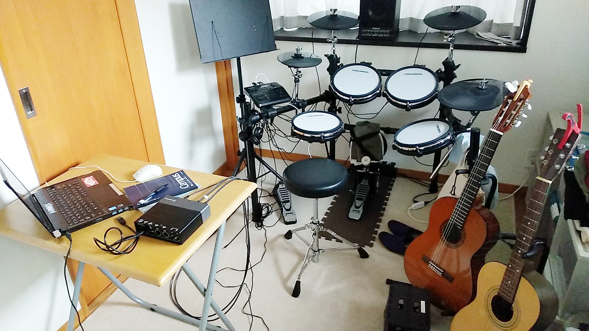 夜のスタジオ練習では、パソコンを持ち込んで、アンプに繋いで披露することにします。宅録に力入れすぎてドラム連携が疎かなので、夜までに少し復習しておきたいと思いマッス。