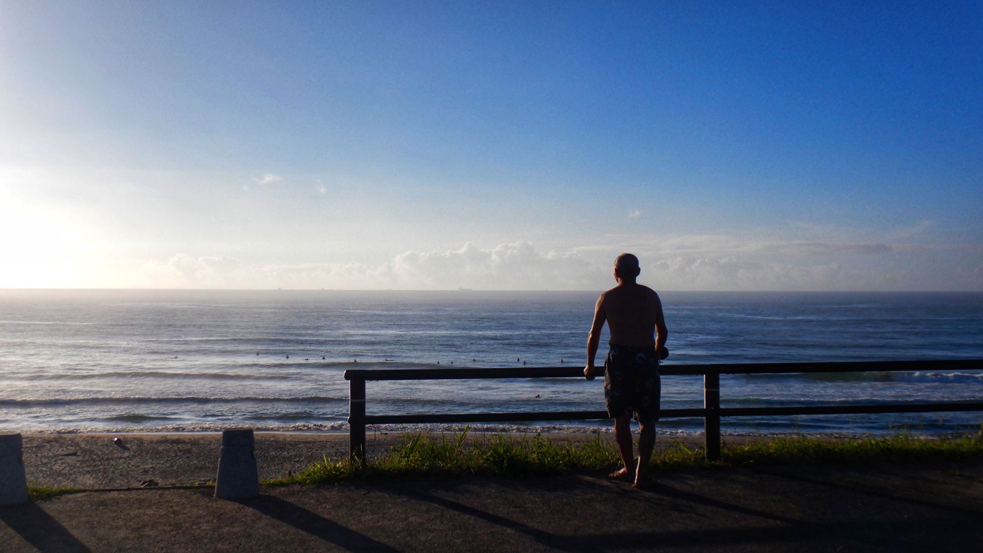 波はヨレてて、コンディション的には良くないわ。最初は全然乗れなかった。乗れそうな場所を求めてた少しずつ北側へ。そこには上級者のミッドおじが居た。おお、たぶん、ここなら乗れる。私はミッドおじのポジションに絶対の信頼をおいていますが、今朝も流石ですよ、悪いながらもまとまった波が次々と来て、レフト、ライトと結構な本数乗れました。今日もありがとうございます、ミッドおじ。