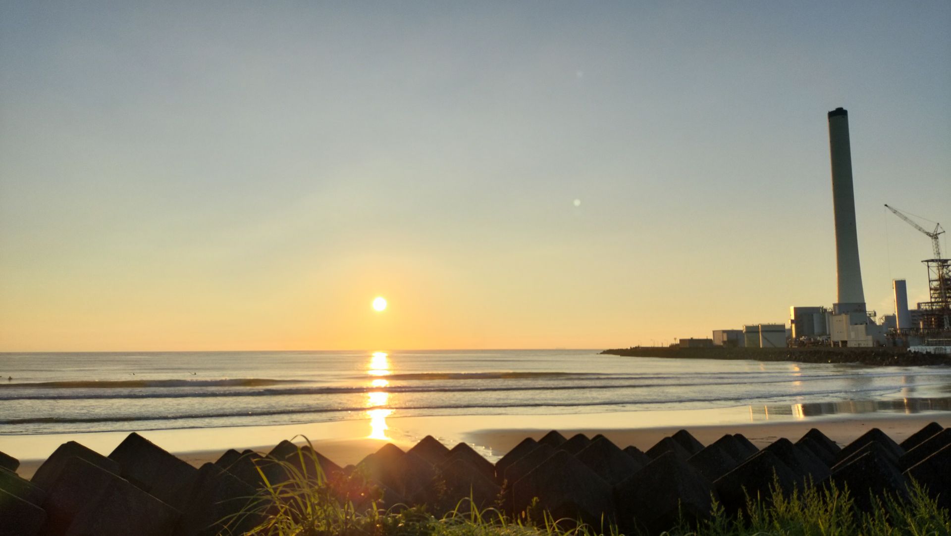 面はクリーンで、サイズはセットで胸くらいかなー。厚めの波で、ロングボーダーが多い。私もロング出そうかと思ったけど、インサイドでハマるのも嫌だから、7’6のシャーパーで行くことにしました。人のあまりいない北側のピークを狙います。周りはショートボーダーが多いね。セットを狙ってレフト、ライト問わずに乗りました。波はフェイド気味だけど、ミッドレングスの浮力でインサイドまで乗れます。たまーにフェイスが張ってくる波もあって楽しめました。今日はフロントサイド中心に乗りましたが、先日のバックサイド縛り練習の成果が出て、バックサイドもうまく乗れました。途中から陽の光が強くて体が火照ってきてしまい、ウェットスーツに海水を入れて冷やしました。想像より夏で驚くわ。たぶん、台風一過だからかな。