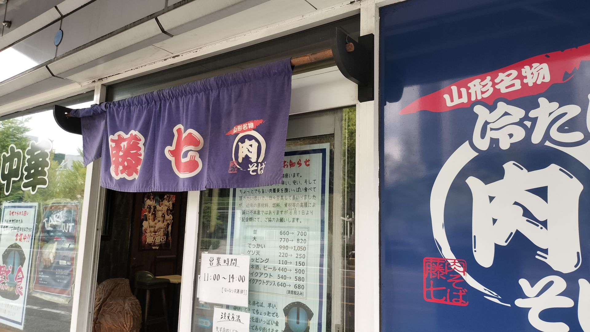 職場の先輩と、昼前に休みを取って早めの出動。11時からの開店なのに、5分後には店内がいっぱいになってました。そば屋と言っても、山形の肉そばです。