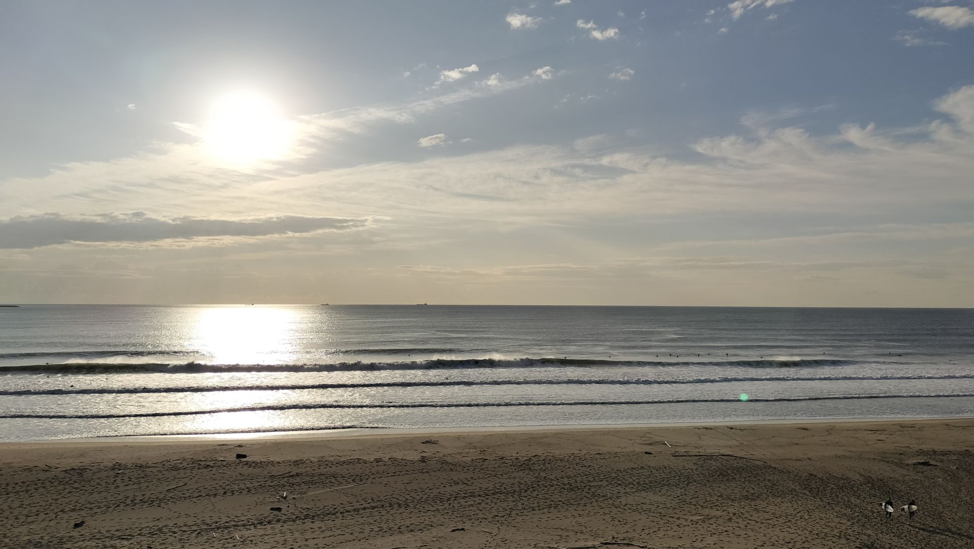 確かに風は強めだったけど、オフショアでむしろ好都合。ウネリも潮もちょうど良く、見た感じから良さそうな波です。今日は、たぶん今シーズン初の南側のひと気のないピークで波待ち。広い範囲で波が割れてたから、たぶん、どこのポジションでもそれなりに乗れたと思う。板はメインボードのシングルフィン。メローな波にぴったりハマりました。基本、ワイドな波だったけど、たまに来る形良い波はレフト、ライトともに質高し。特に今日はフロントサイド、レフトの波が良くて、5本くらいはロングライドできました。南部海岸ではライト縛りが続いたけど、久しぶりの良いレフトは最高でしたわ。