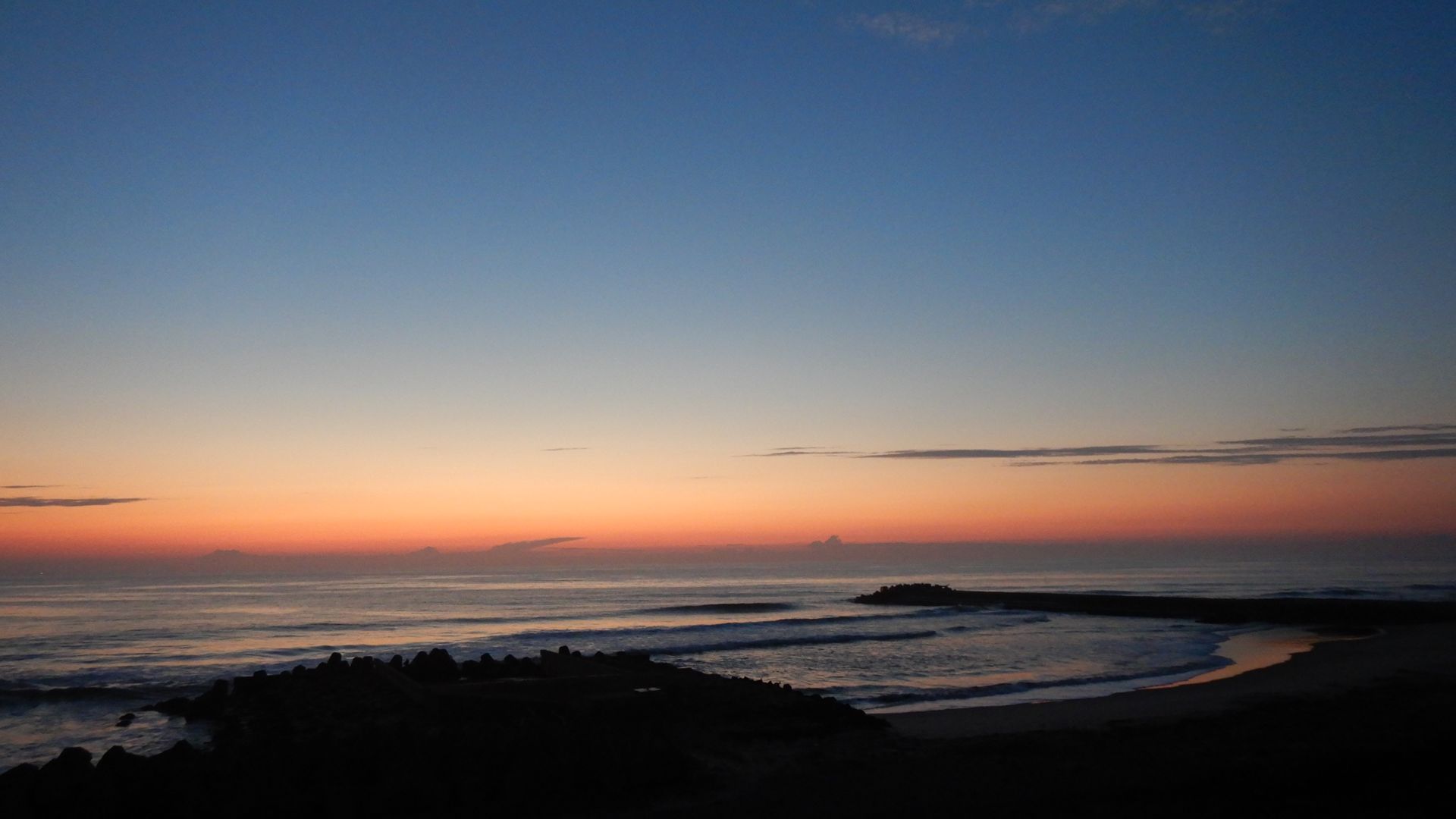 潮が多いせいかな、波は割れにくいようです。昨日の新港とおんなじ感じかなー。板は昨日と同じ、シャーパーで行きます。すでに先客が2名。ヘッドランド脇で波待ちしていたので、私は少し北側のピークで波待ち。朝一はうまい具合に波のピークに合わせることができたようで、数本、良いグーフィーに乗れました。そこから30分後くらいから、すうっとウネリが消えて、プカプカ浮いてるだけの時間帯。待っててもしゃーないので、メインピークに寄ってレギュラーも狙う。結局、良い波には乗れなくて、スープに乗ってインサイドまでゆるりとライドを繰り返して終了!お天気が良かったので、気分はスッキリ。爽やかな風を受けながら着替えをして帰路につきました。