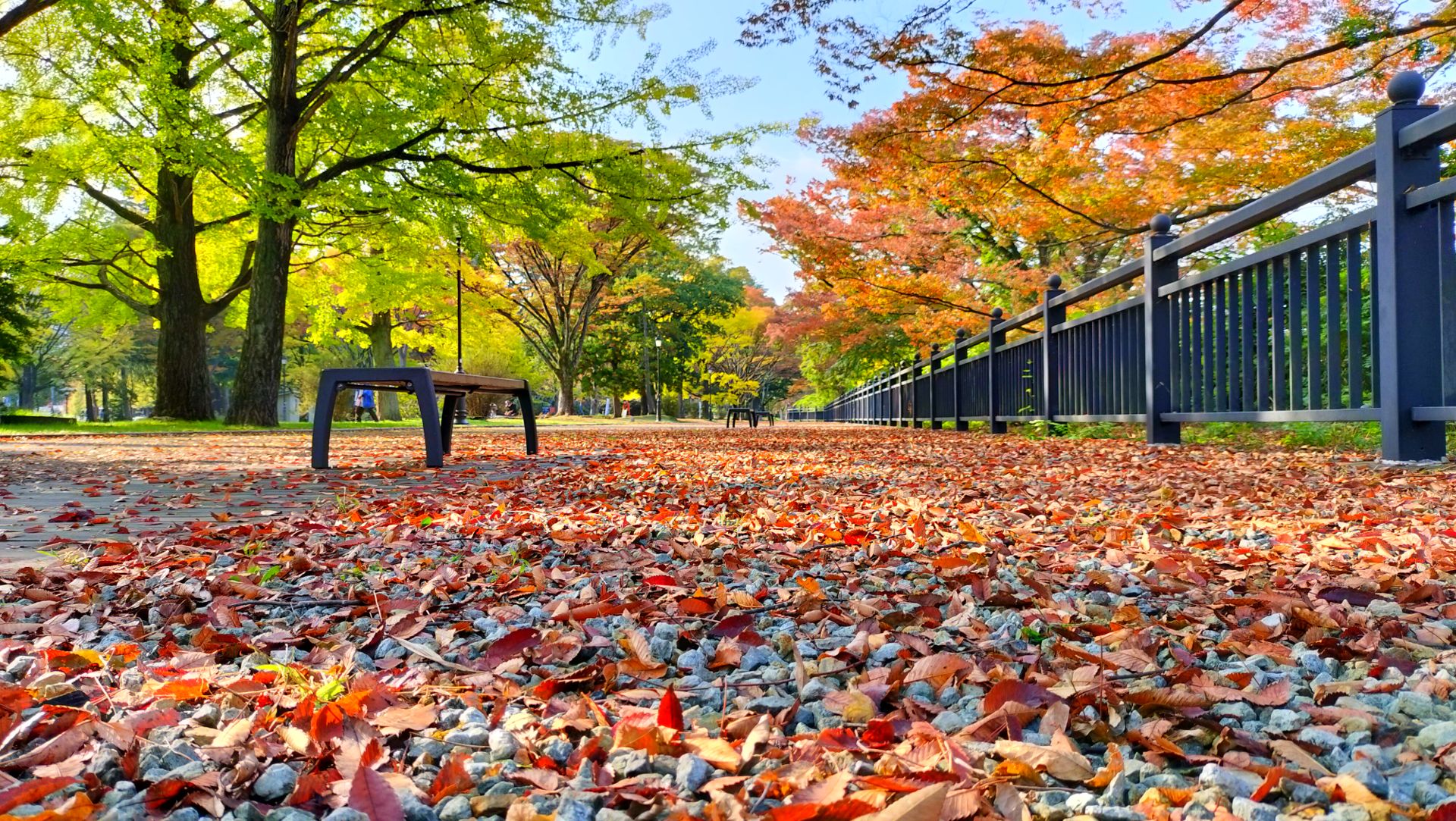 今日も良い天気。通勤で通る公園は、紅葉よりも落葉が進んでいるようで。イチョウの色付きがまだまだだね。