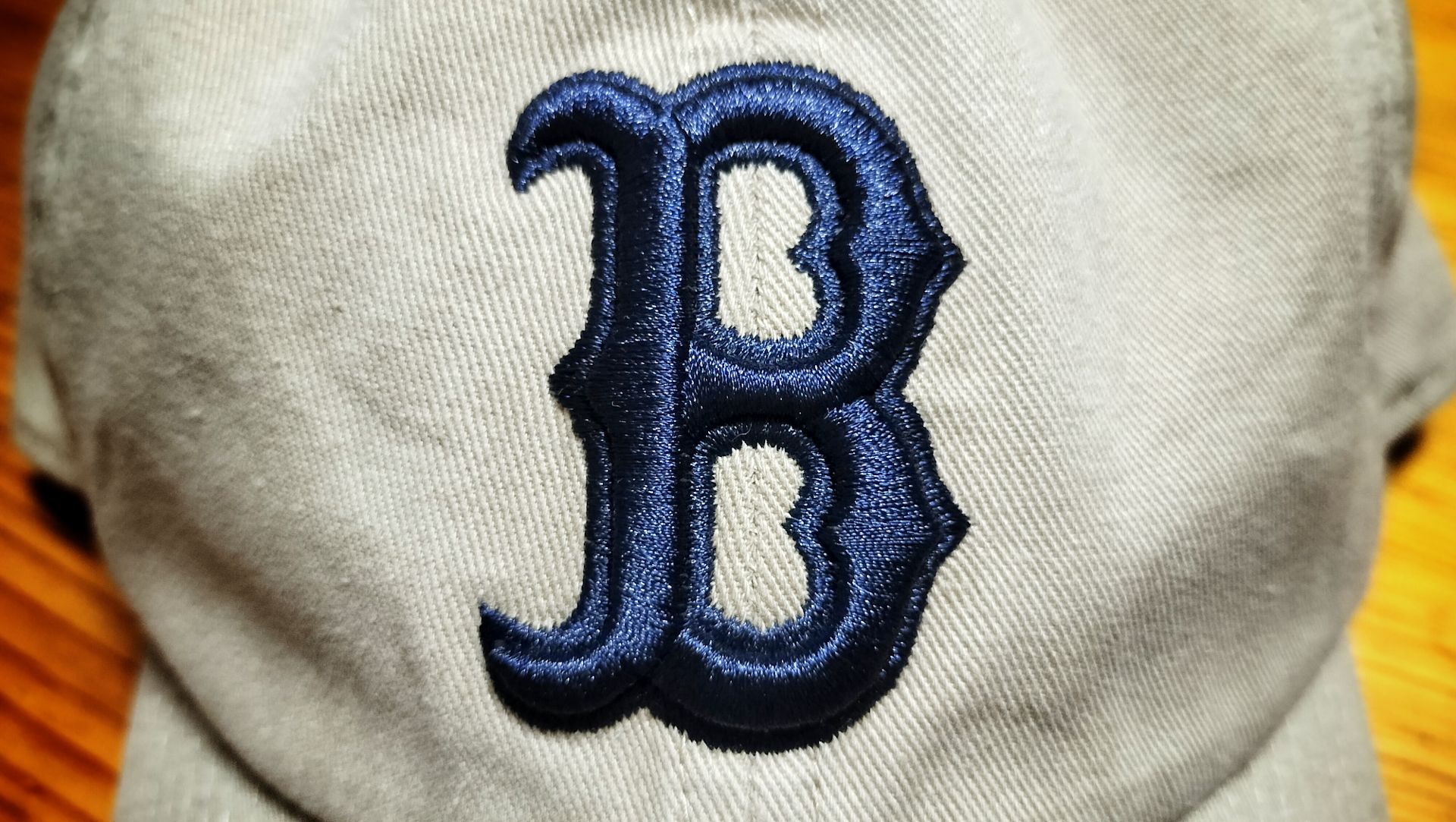 MLBのマークが入ってるから、たぶん、レッドソックスなんだろう。種類がたくさんあって、浅い深い、つばが長い短いなど、いろいろあるねの。何種類か被って、自分の頭に合ったものを買いました。私は頭が小さいらしく、浅めのキャップが頭にフィットするね。