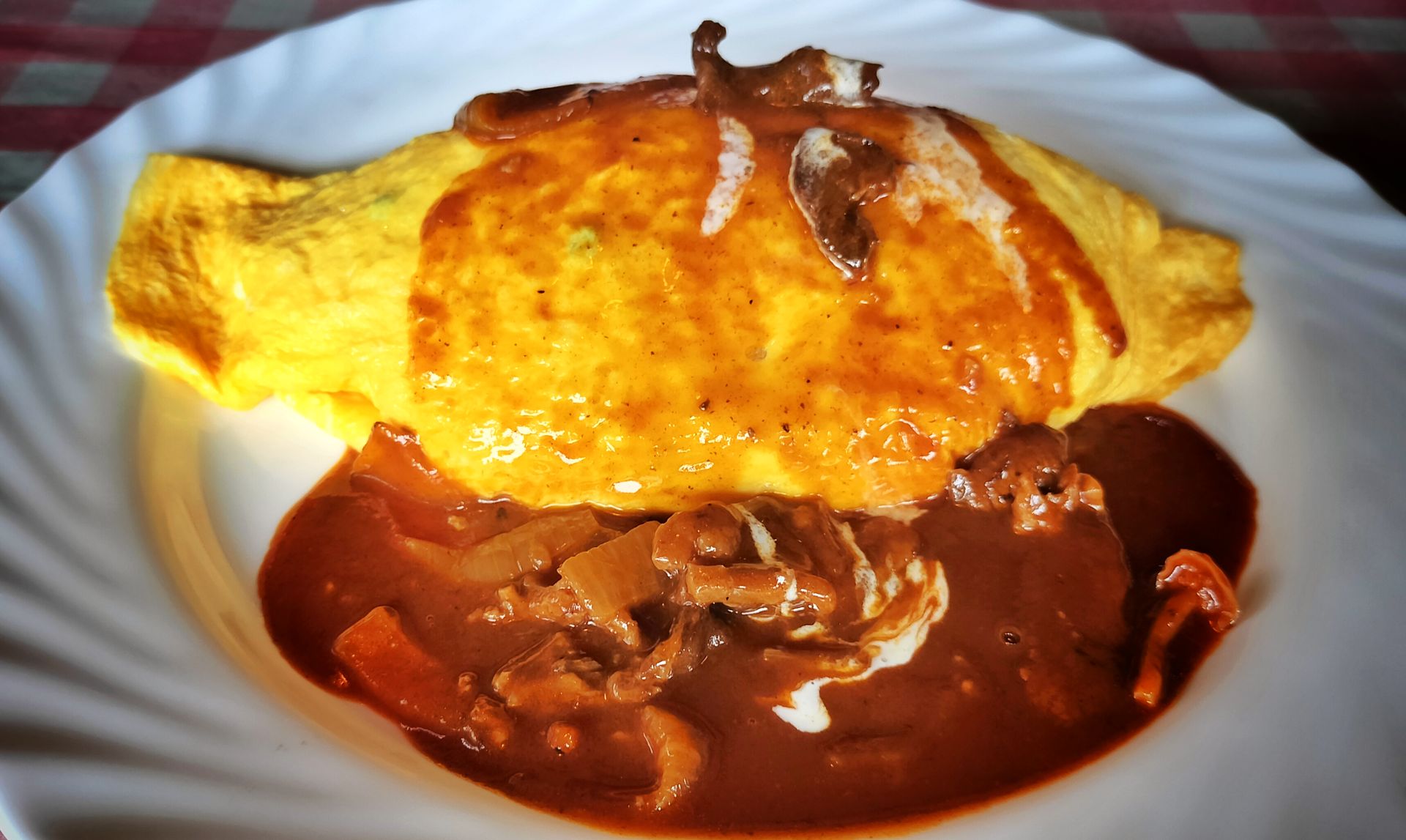 今日は午前中から外回りで福島市内へ。事務所での打ち合わせの前に市内のオムライス専門店に行ってオムライスを食べた。お店でオムライスを食べるなんて何年ぶり?いろいろメニューがあって、その中からビーフストロガノフのオムライスを食べてみた。中のライスがガーリックライスになっていて、ソースも美味しかった。玉子焼きも上だけでなく、ちゃんとライスを包んでいて、専門店って感じね。